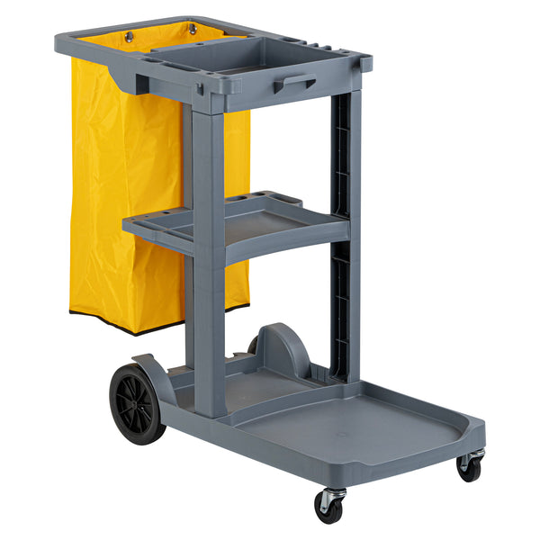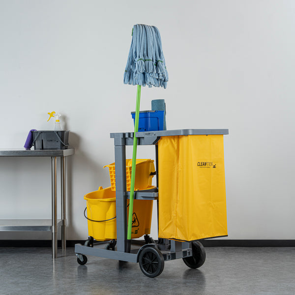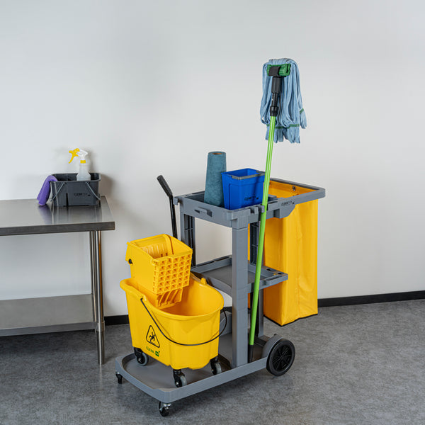 This durable janitor cart is sold in a wide range of colors, allowing for easy identification and organization in busy environments. Choose a color that complements your workspace or distinguishes specific carts for different areas..