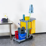 GRAY 3-SHELF JANITOR CART - 18 GAL BAG, LID, 2 BUCKETS, 1 WRINGER