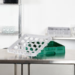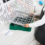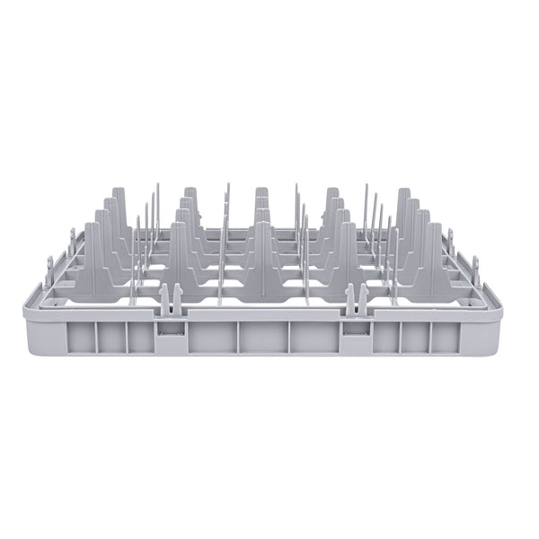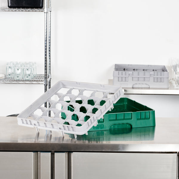 Clean your glassware efficiently with our Clean Tek Professional Gray Full Drop Extender. This dishwasher rack extender pairs seamlessly with our collection of compatible Clean Tek Professional glass racks. Designed to increase the height of your current glass rack, this glass rack extender provides extra protection for taller glassware, ensuring it remains undamaged during storage and transport. This barware organizer, holding up to 25 glasses, offers ample space for various barware sizes. Featuring open interior compartments, this full drop extender ensures enhanced cleaning, allowing every glass to sparkle effortlessly. The solid external walls of this commercial glass rack provide robust protection during both transport and storage. With its easy-to-handle design, this compartment rack is perfect for quick and safe loading and unloading. Measuring 19.69 inches in length by 19.69 inches in width by 4.72 inches in height, this glassware storage fits perfectly in commercial settings. Sold in a 1 count box. Glass rack is available and sold separately.