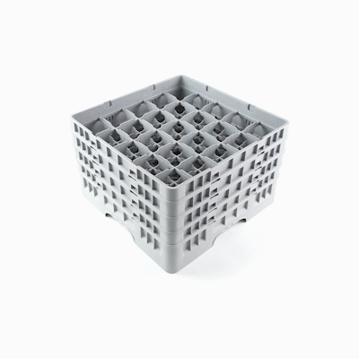 GRAY GLASS RACK - 25 COMPARTMENTS, 1 FULL AND 3 HALF DROP EXTENDERS