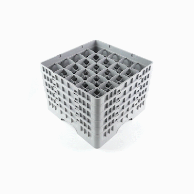GRAY GLASS RACK - 25 COMPARTMENTS, 1 FULL AND 4 HALF DROP EXTENDERS