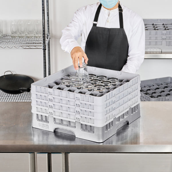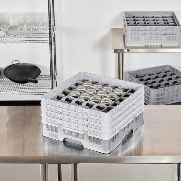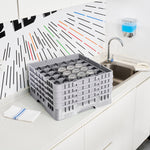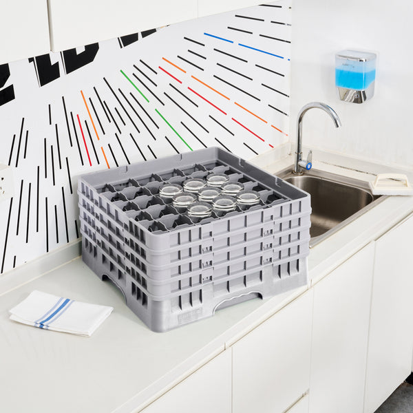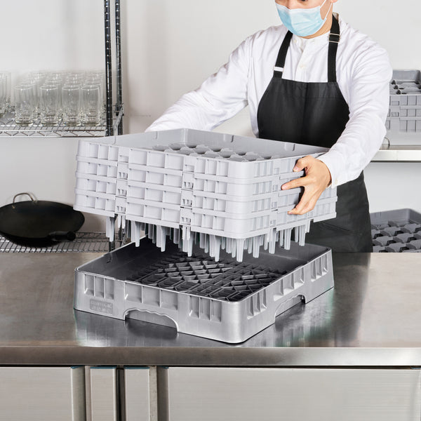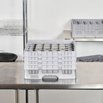 Effortlessly organize and protect your glassware with our Clean Tek Professional Gray Glass Rack. This commercial glass rack features 36 compartments to safely store and transport a variety of glassware. Designed for optimal glassware storage, this rack includes one full drop extender and three half drop extenders to accommodate different glass sizes. Constructed from durable PP, this dishwasher rack is built to withstand the rigors of busy kitchens. The easy-to-handle design ensures quick and efficient loading and unloading. With open interior compartments, this rack allows for thorough cleaning and drying of your glassware. Solid external walls provide added stability and protection during transport. Measuring 19.69 inches in length by 19.69 inches in width by 10.51 inches in height, this barware organizer fits seamlessly into commercial dishwashers. Sold in a 1 count box.
