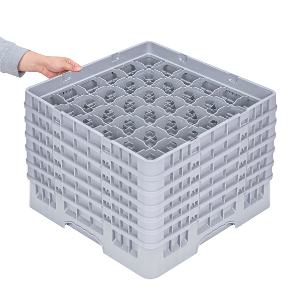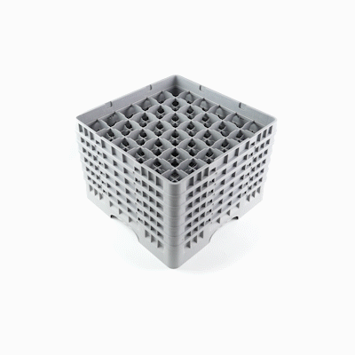 GRAY GLASS RACK - 36 COMPARTMENTS, 1 FULL AND 5 HALF DROP EXTENDERS