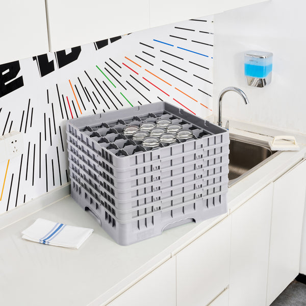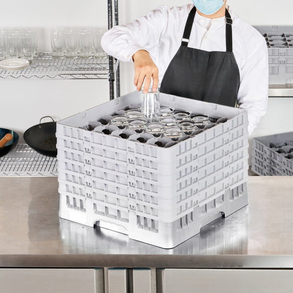 Optimize your glassware storage with our Clean Tek Professional Gray Glass Rack. Featuring 36 compartments, this commercial glass rack provides ample space for organizing barware efficiently. Designed with a full drop extender, this dishwasher rack accommodates various glass heights with ease. The inclusion of 5 half drop extenders ensures flexible glassware storage for different sizes. Constructed from durable PP, this compartment rack withstands the rigors of commercial use. An easy-to-handle design makes maneuvering and transporting this rack a breeze. Open interior compartments allow for quick and thorough cleaning of glassware. Solid external walls add an extra layer of protection, keeping glassware safe during transport. Measuring 19.69 inches in length by 19.69 inches in width by 13.74 inches in height, this barware organizer fits seamlessly into any commercial dishwasher setup. Sold in a 1 count box.