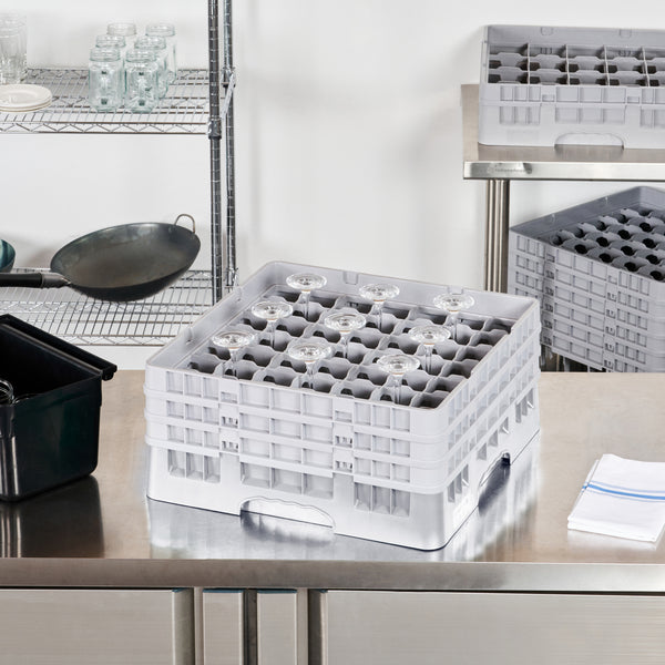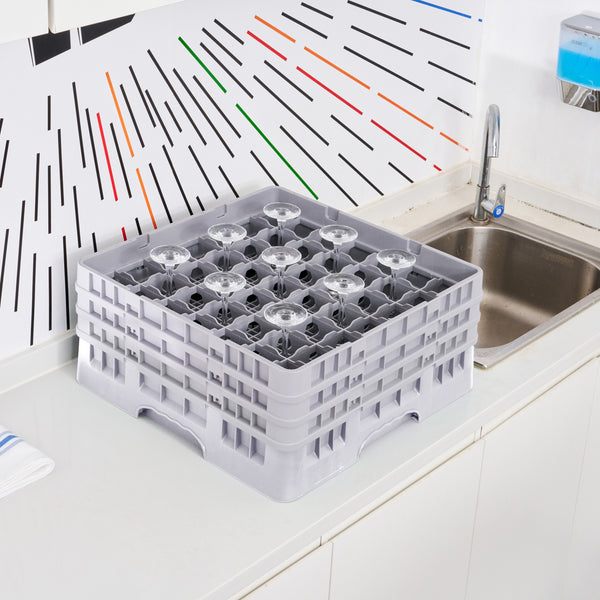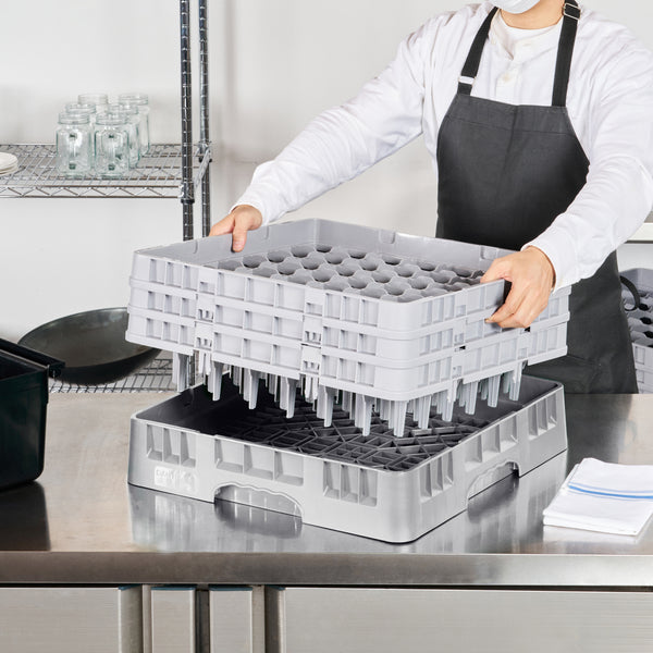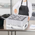 Enhance your glassware storage solutions with our Clean Tek Professional Gray Glass Rack. This commercial glass rack features 49 compartments, providing optimal organization for your barware. Designed with an easy-to-handle structure, this dishwasher rack ensures seamless transport and storage. The open interior compartments allow for efficient air circulation, promoting quick drying times. Constructed from durable PP, this compartment rack offers long-lasting performance in busy foodservice settings. Equipped with a full drop extender and two half drop extenders, this rack can accommodate various glass heights. Solid external walls add extra protection, preventing accidental breakage and ensuring the safety of your glassware. Measuring 19.69 inches in length by 19.69 inches in width by 8.86 inches in height, this barware organizer fits perfectly in commercial dishwashers. Sold in a 1 count box.