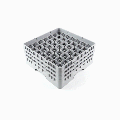 GRAY GLASS RACK - 49 COMPARTMENTS, 1 FULL AND 2 HALF DROP EXTENDERS