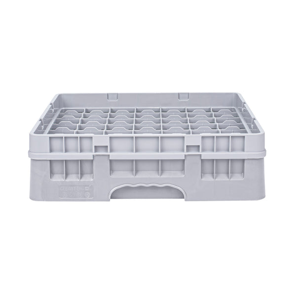 Organize and protect your glassware with our Clean Tek Professional Gray Glass Rack. Featuring 49 compartments, this commercial glass rack offers ample space for efficient glassware storage. The included full drop extender ensures that even taller glasses are securely accommodated in this barware organizer. Made from durable PP, this dishwasher rack is built to withstand the rigors of daily use in a busy foodservice environment. An easy-to-handle design makes transporting and managing your glassware simple and stress-free. This compartment rack comes equipped with open interior compartments for better air circulation and faster drying times. Solid external walls provide added protection, ensuring your glassware remains intact during storage and transport. Measuring 19.69 inches in length by 19.69 inches in width by 5.63 inches in height, this rack is perfectly sized for commercial use and fits seamlessly into most dishwashing systems. Sold in a 1 count box.