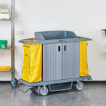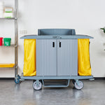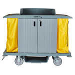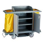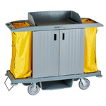 GRAY HOTEL / HOUSEKEEPING CART - 20 GAL BAGS, 3 LOCKING SHELVES