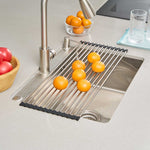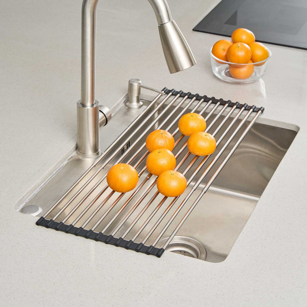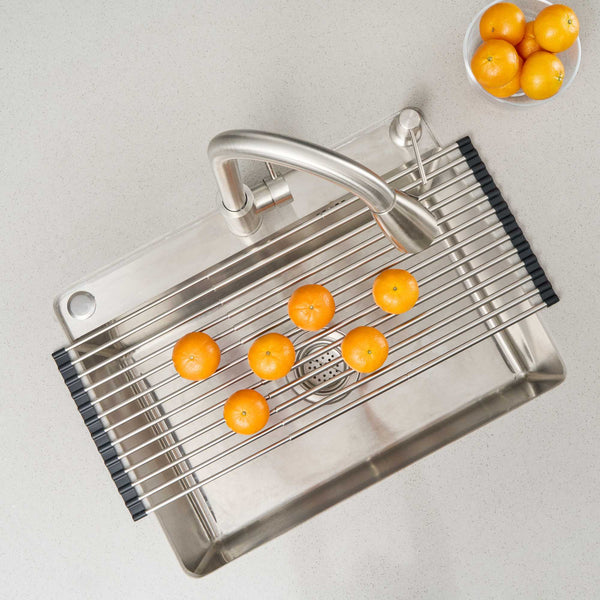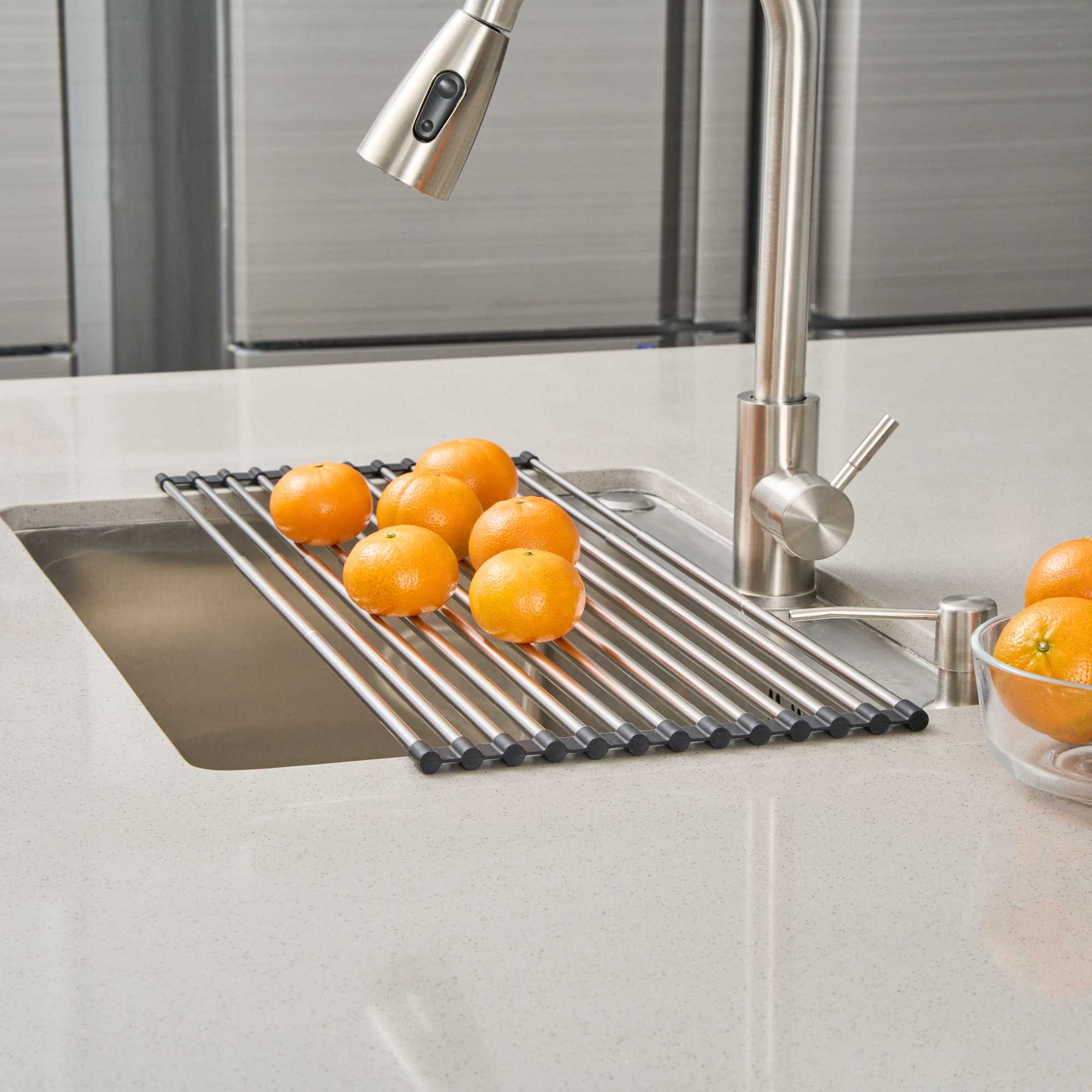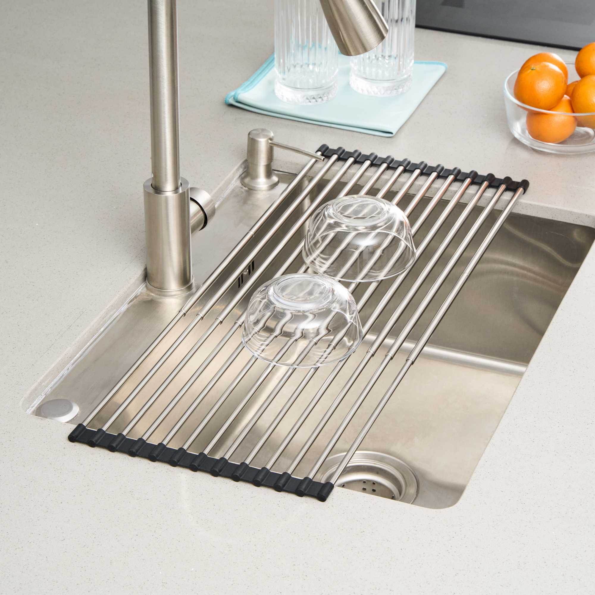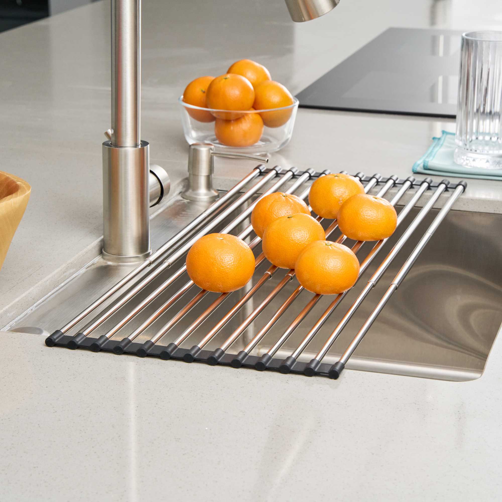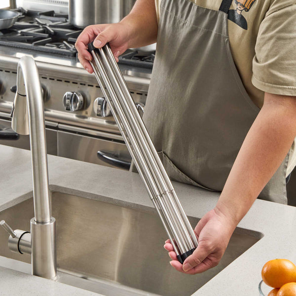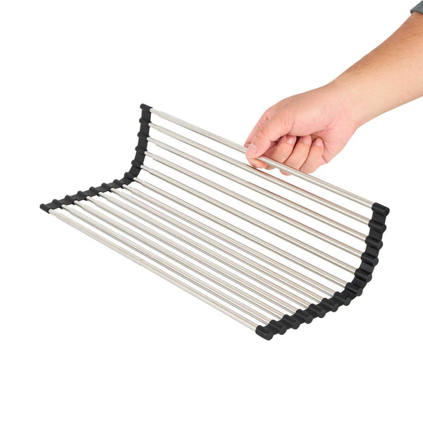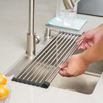 PROFESSIONAL GRAY STAINLESS STEEL OVER-SINK ROLL-UP DRYING RACK
