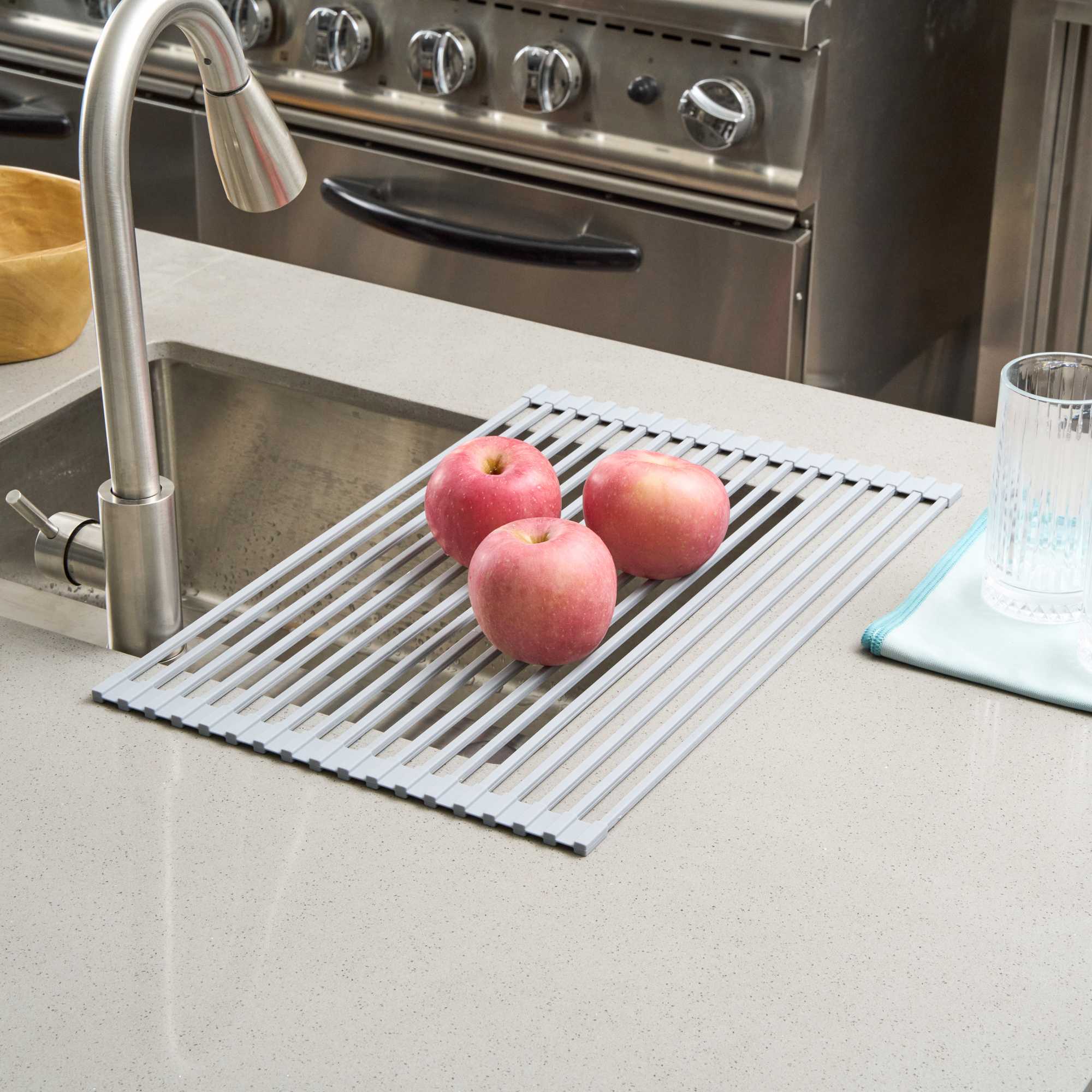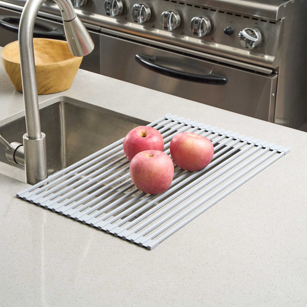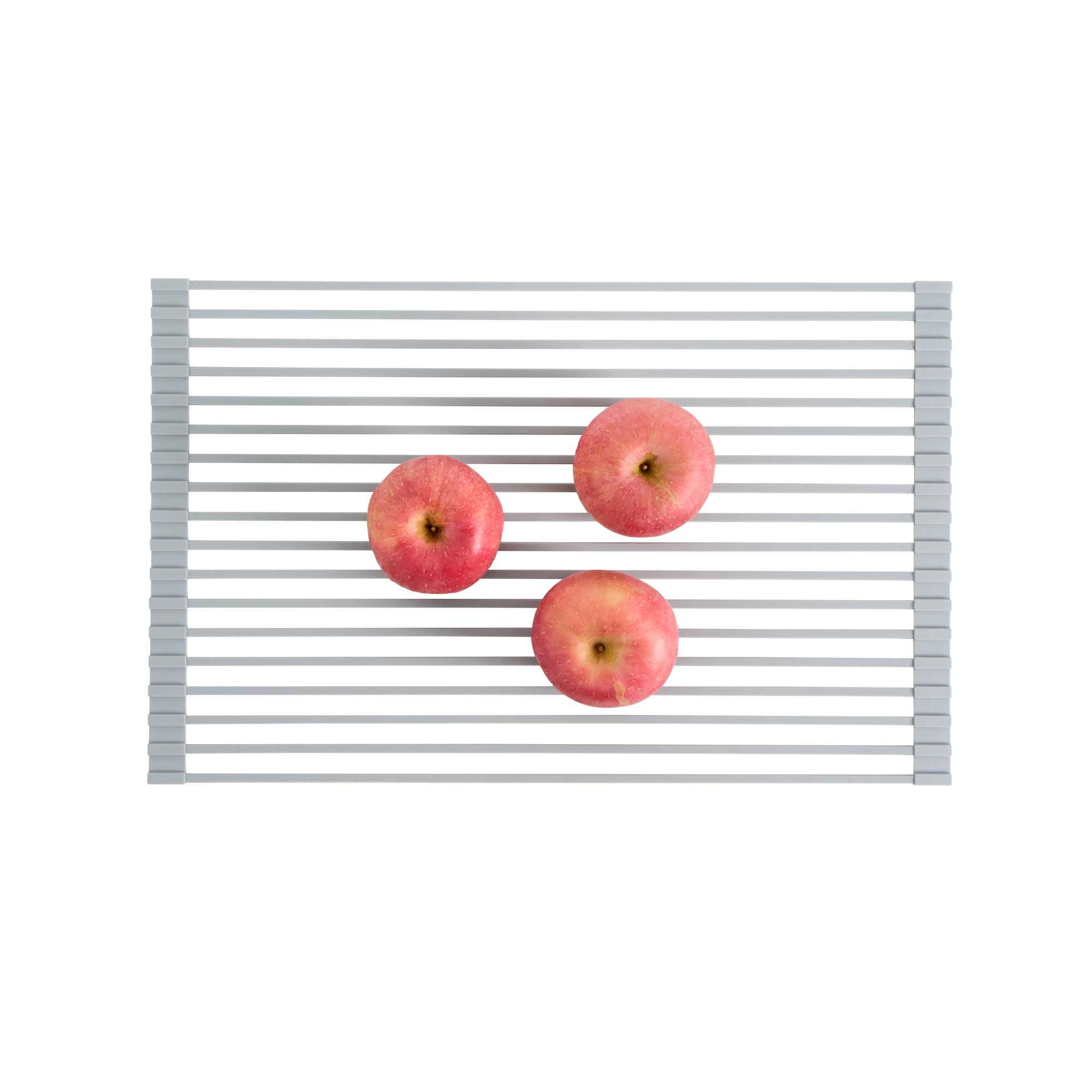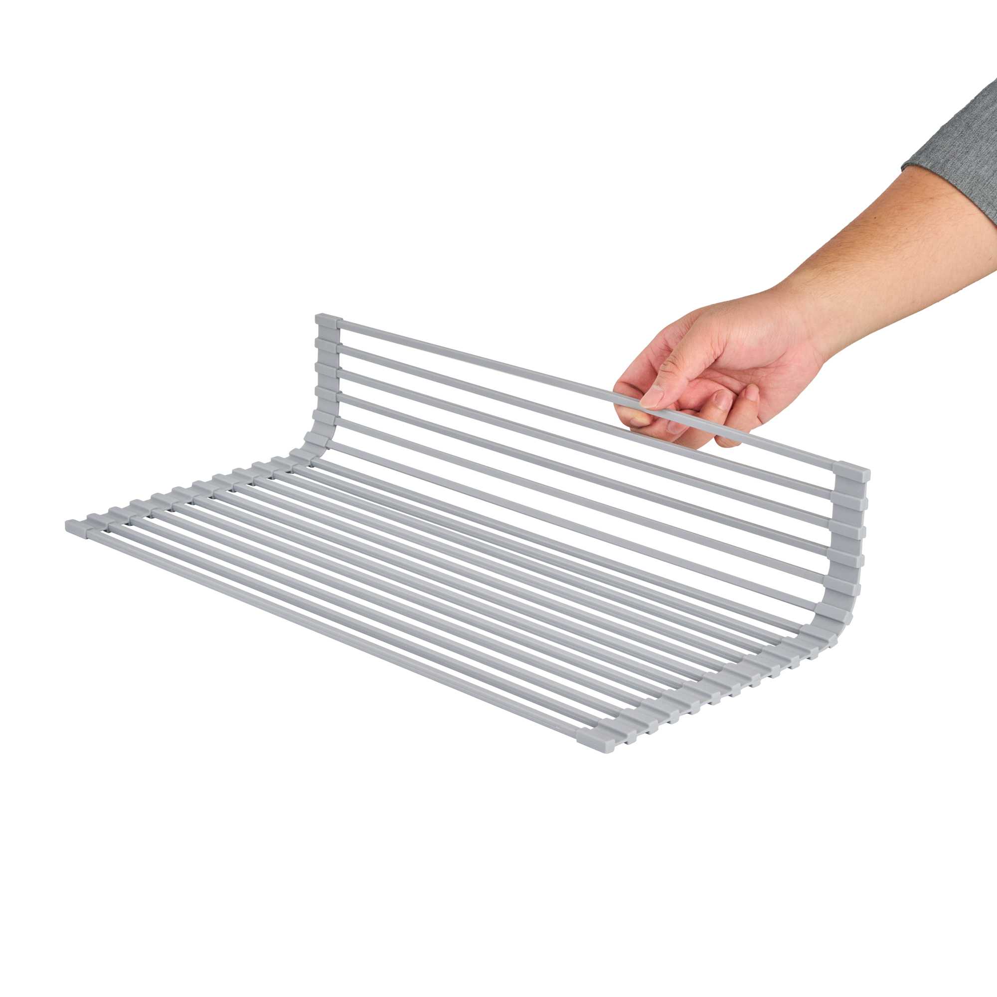 PROFESSIONAL GRAY STEEL OVER-SINK ROLL-UP DRYING RACK - NON-SLIP