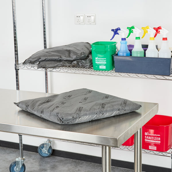Enhance workplace safety with versatile spill management solutions. Clean Tek Non-Flammable Absorbent Pillows offer exceptional absorbency and strength due to their durable nonwoven polypropylene construction, effectively managing spills in tight spaces. These chemical absorbent pillows absorb a wide variety of fluids, including oil-based, water-based, and chemical-based liquids, providing comprehensive spill control in foodservice settings. Their non-flammable design minimizes fire hazards, making them suitable for use in industrial kitchens, laboratories, and restaurants. Measuring 18.11 inches by 18.11 inches with a height of 1.18 inches, these oil spill pillows ensure ample coverage to tackle larger spills efficiently. Compatible with acids, they support safe spill management in compliance with safety regulations. Elevate your spill control strategy with these absorbent pillows for a cleaner, safer workspace. Each order includes 10 Clean Tek Non-Flammable Absorbent Pillows.