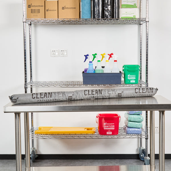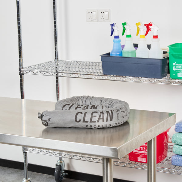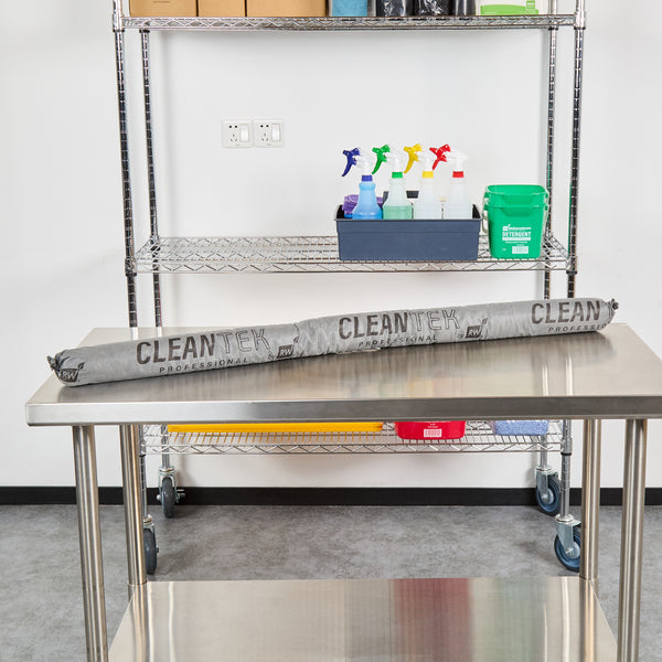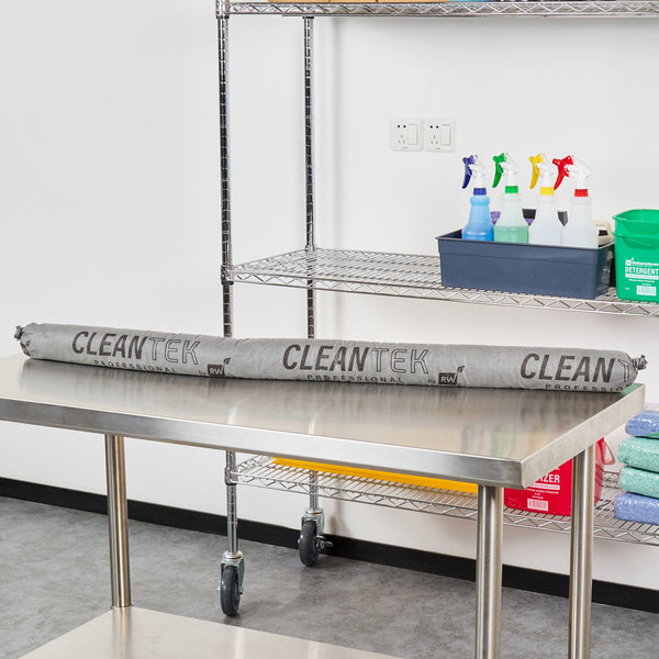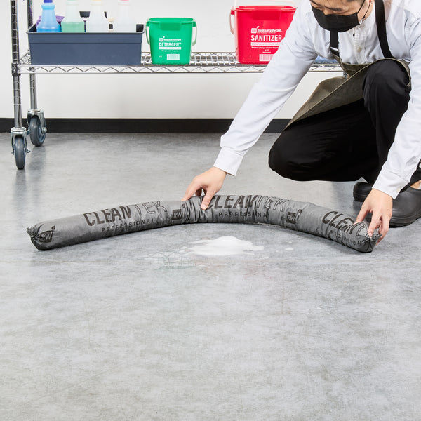 Efficiently manage spills with versatile spill absorbent socks. The Clean Tek Professional Gray Nonwoven Spill Absorbent Socks, made from a universal sorbent material, are designed to absorb a wide range of fluids, including oils, coolants, solvents, and water, making them indispensable in maintaining safe, clean kitchen environments. Measuring 4 feet in length and 3 inches in diameter, these spill socks easily mold around machinery and corners, ensuring targeted containment and preventing slip hazards. With their ability to handle oil-based and chemical spills, these chemical spill socks simplify cleanup processes in busy foodservice settings. The nonwoven construction allows for safe use with hydrochloric acid, providing reliable management of accidental chemical spills in industrial kitchens. Equip your establishment with these oil absorbent socks to ensure preparedness for any spill incident. Each order includes 20 Clean Tek Professional Gray Nonwoven Spill Absorbent Socks.