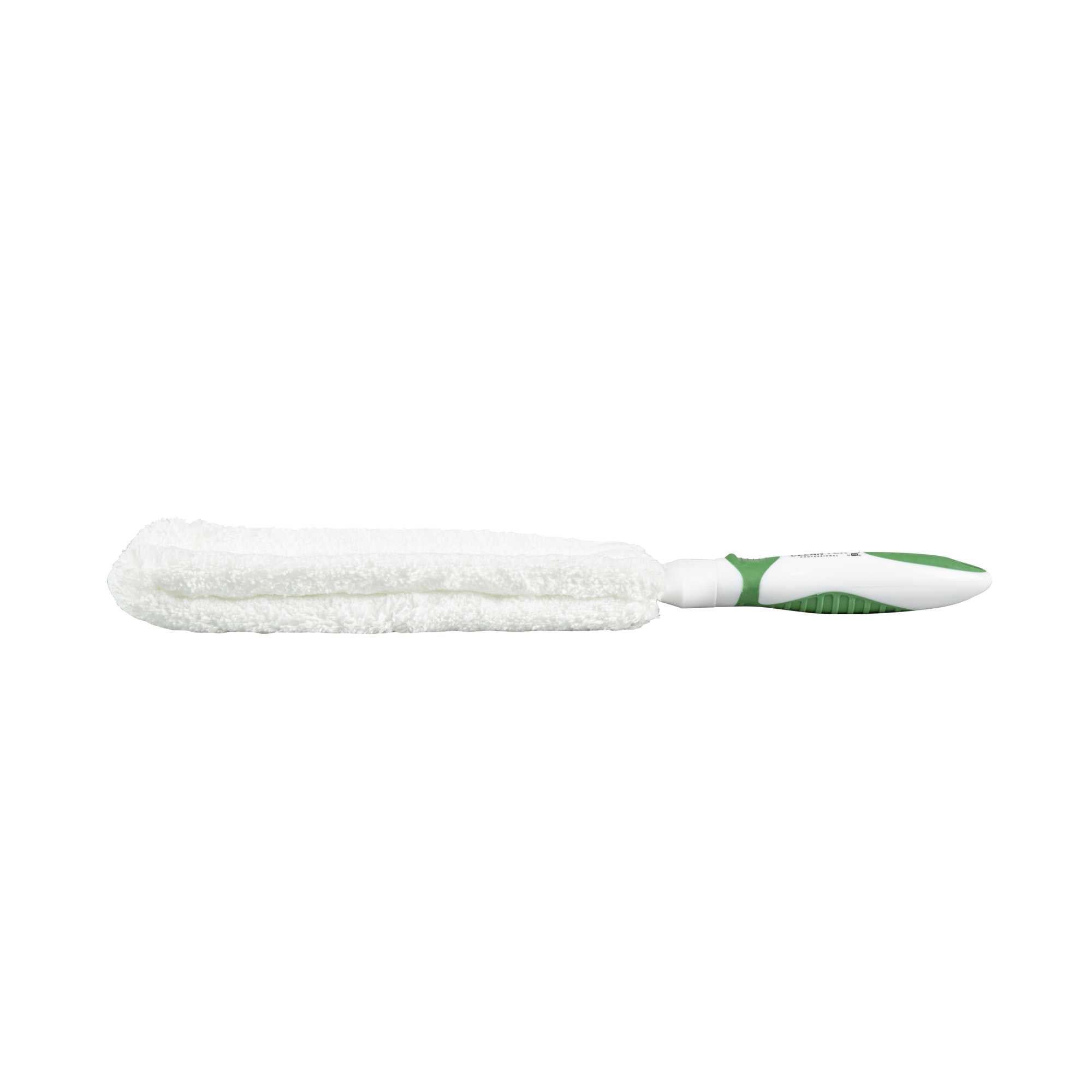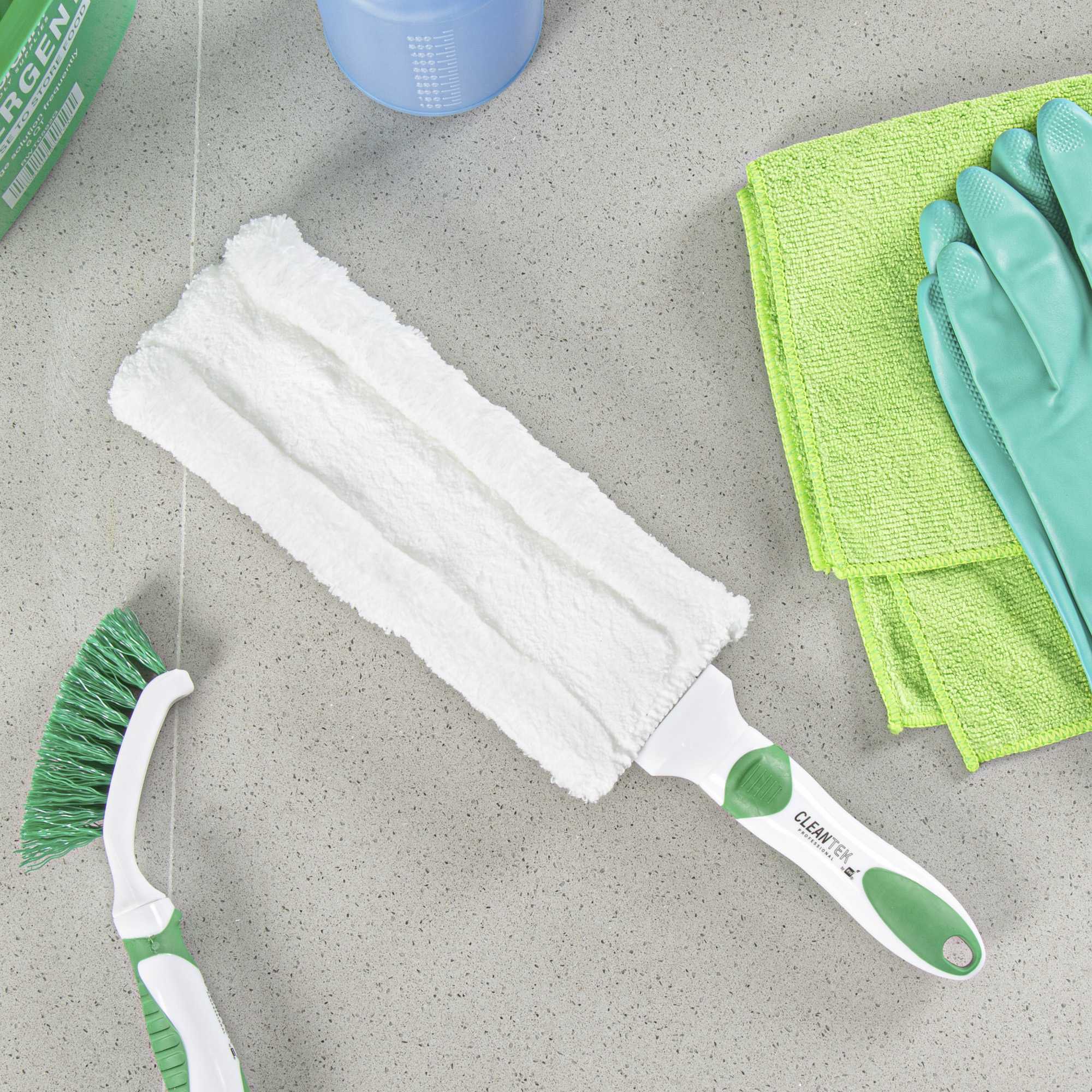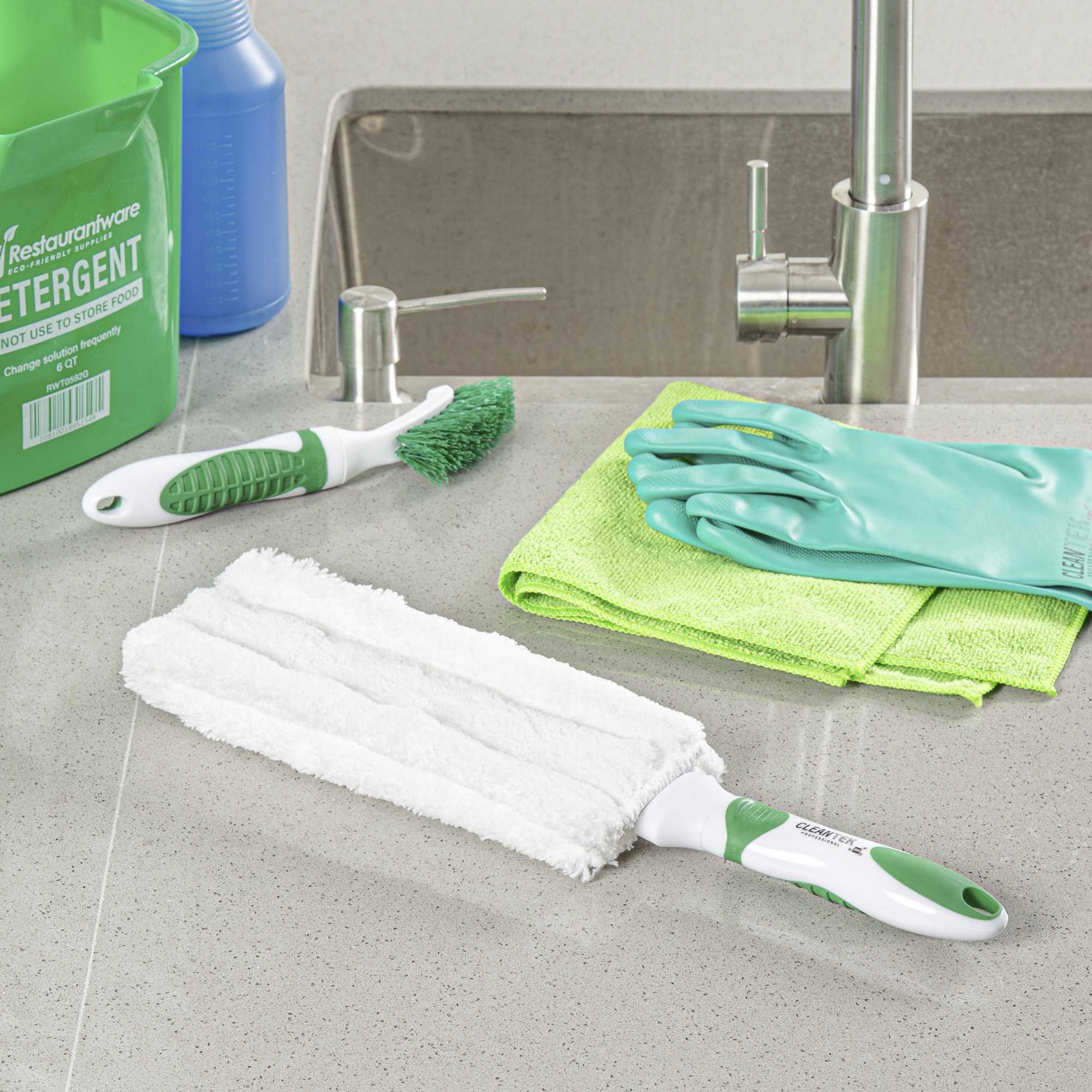 Maximize cleaning efficiency with a versatile dusting tool. The Clean Tek Professional Non-Slip Handle 14.76-Inch Dusting Brush in Green+White, with its 14.76-inch length, features a large head size that swiftly covers expansive surfaces, making it an ideal dusting brush for any commercial setting. The distinctive green and white handle ensures easy identification, minimizing downtime in bustling settings. Equipped with a comfortable, non-slip grip, this furniture duster is perfect for tackling window blinds, furniture, bookshelves, and more. The washable cotton head is washable, allowing for reuse and reducing waste. Enhance your cleaning routine with this ceiling fan duster, designed to meet the rigorous demands of professional cleaning. Each order includes 1 Clean Tek Professional Non-Slip Handle Dusting Brushes – Green+White, Washable Head.