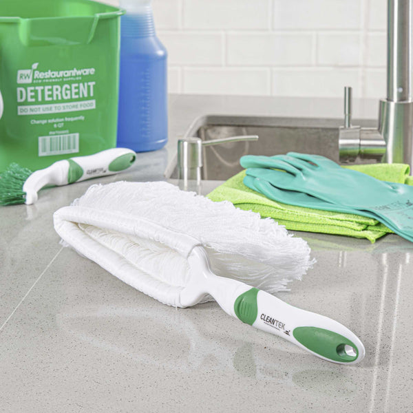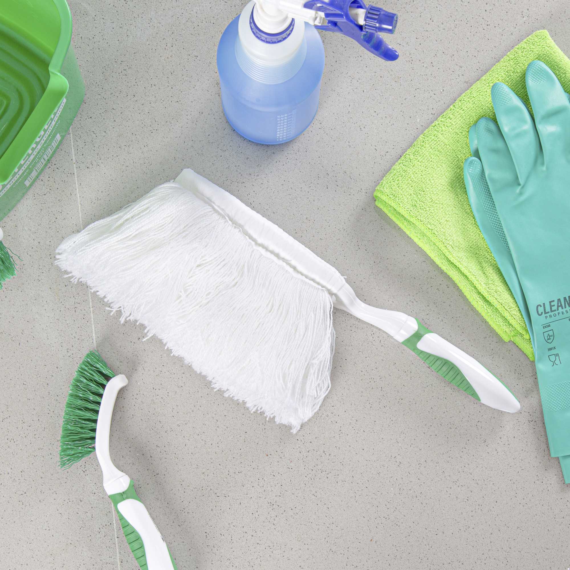 Streamline your cleaning process with reliable dust removal. The Clean Tek Professional Non-Slip Handle 13.78 inches car duster – Green+White, Plastic, Washable Head, Compact Storage – 2.1 inch by 2.5 inch features a cotton fiber head that efficiently captures dust, making it an essential tool for maintaining cleanliness in kitchens. Its extendable head easily reaches tight spaces, perfect for accessing challenging areas in storage rooms, and ensuring comprehensive cleaning. Designed with a green and white handle, this duster provides an ergonomic grip for staff, reducing fatigue during prolonged use. Constructed from durable plastic, this interior cleaning duster is lightweight. Optimize your cleaning tasks with this practical and versatile car duster that suits various surfaces, including window blinds and ceiling fan blades. Each order includes 1 Clean Tek Professional Non-Slip Duster.