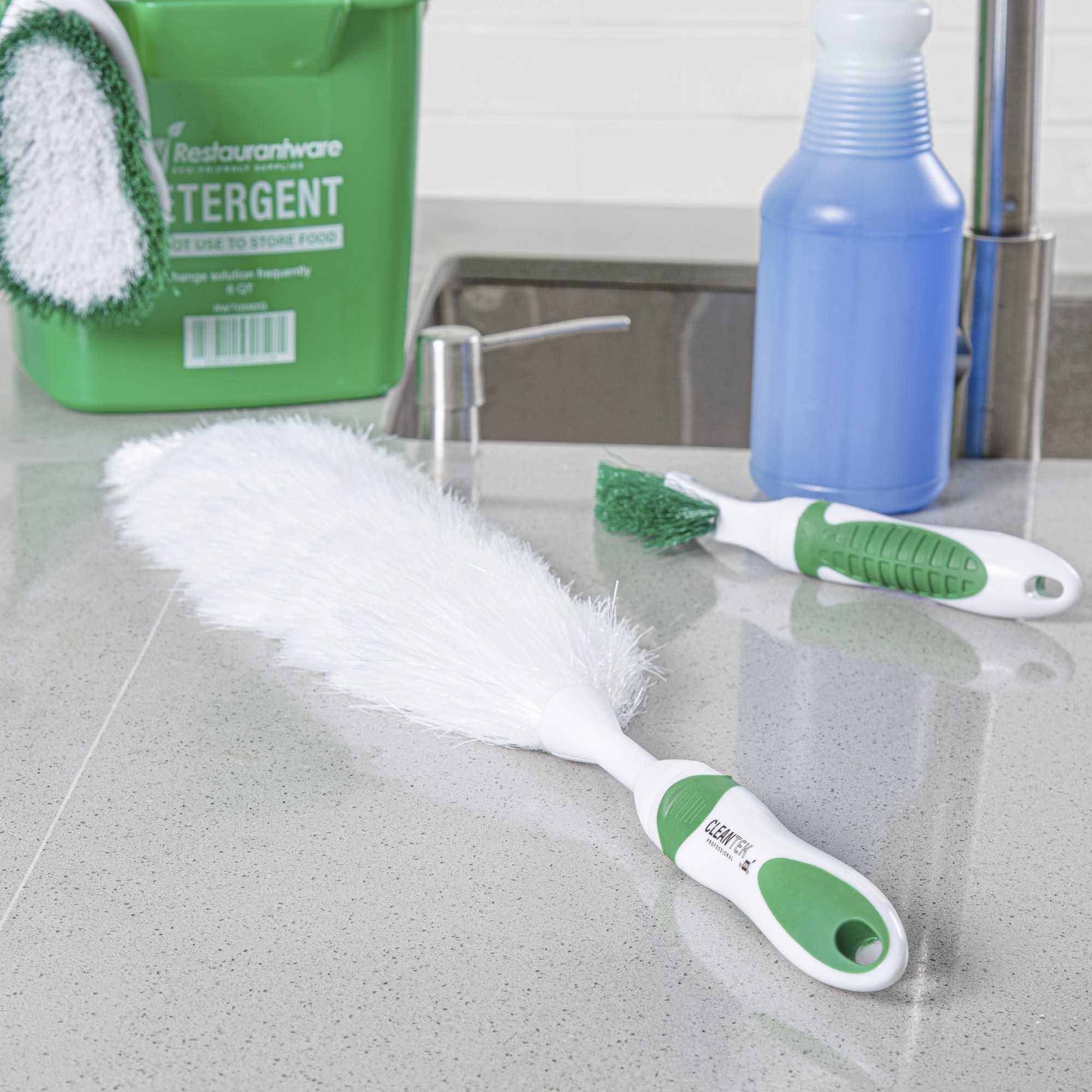 Effortlessly reach high shelves with the Clean Tek Professional Bendable Cleaning Duster. This cleaning duster boasts a long fiber length that makes it simple to clean hard-to-reach spots, enhancing your staff's efficiency. The static duster comes equipped with a lightweight plastic handle that ensures comfortable extended use, preventing fatigue during lengthy cleaning sessions. Additionally, the non-slip, comfortable grip handle provides a secure hold, reducing the risk of accidents while dusting. Measuring 22 inches in length and 2.3 inches in both width and height, this dusting wand is perfect for maintaining a pristine setting in your establishment. Invest in this dependable tool to streamline your cleaning routine effectively. Each order includes 10 Clean Tek Professional Bendable Cleaning Dusters.