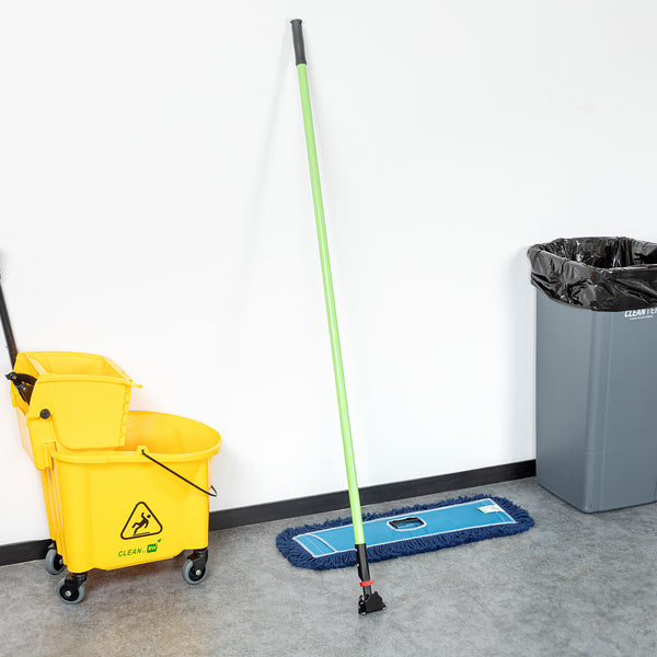Optimize your cleaning routine with our Clean Tek Professional Green Fiberglass Dust Mop Handle. This long mop handle is expertly designed to pair with our collection of compatible Clean Tek Professional mop frames and mop heads for a complete and efficient cleaning solution. Equipped with a metal head and clamp, this heavy-duty mop handle firmly holds the mop frame in place, ensuring stability and secure attachment during cleaning tasks. For user comfort, the PP grip on this dry mop handle reduces strain and fatigue during extended use. Crafted from premium fiberglass, this dust mop handle withstands daily use for long-lasting performance. Measuring 63.98 inches in length, this mop handle provides extended reach, making it easier to clean large areas with minimal effort. Sold in a 1 count box. Mop frame and head are available and sold separately.