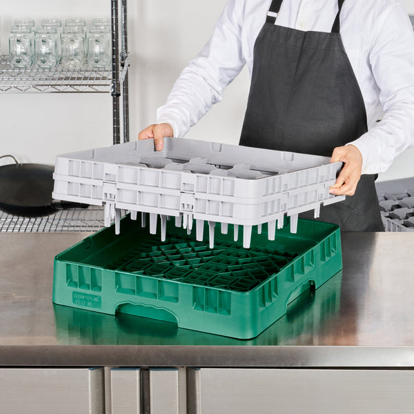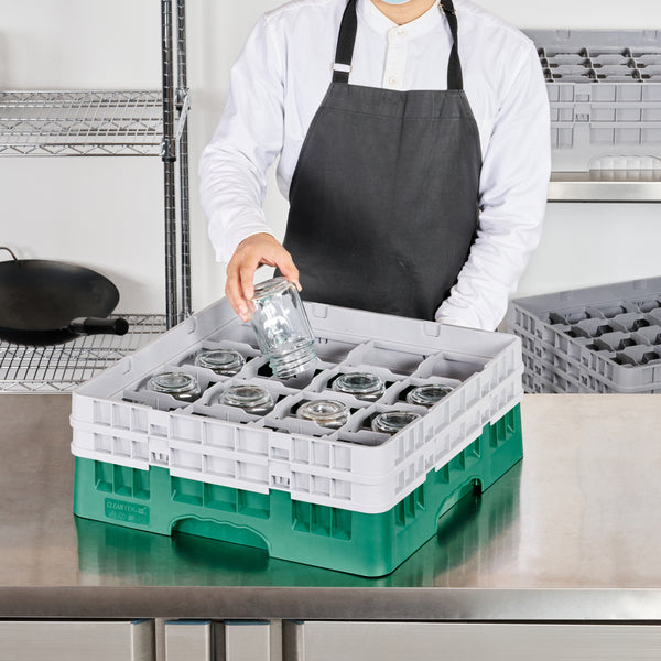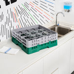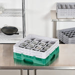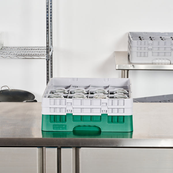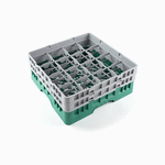 Optimize your glassware storage and streamline your kitchen operations with our Clean Tek Professional Green Glass Rack. This commercial glass rack features 16 compartments, ensuring each glass is securely held in place during transport and cleaning. Built with a durable PP material, this dishwasher rack withstands the demands of busy foodservice settings. The easy-to-handle design allows staff to quickly move and organize barware, enhancing efficiency in any setting. With open interior compartments, this compartment rack facilitates thorough cleaning and drainage, keeping your glassware spotless. Solid external walls provide extra protection, making this barware organizer ideal for high-traffic areas. Measuring 19.69 inches in length by 19.69 inches in width by 7.24 inches in height, this glassware rack offers ample storage space while maintaining a compact footprint. Sold in a 1 count box.