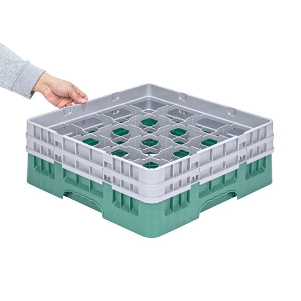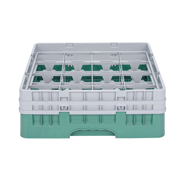 GREEN GLASS RACK - 16 COMPARTMENTS, 1 FULL AND 1 HALF DROP EXTENDER