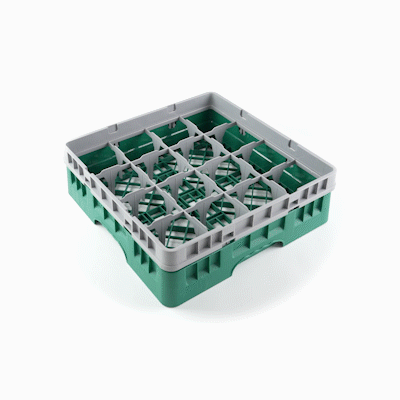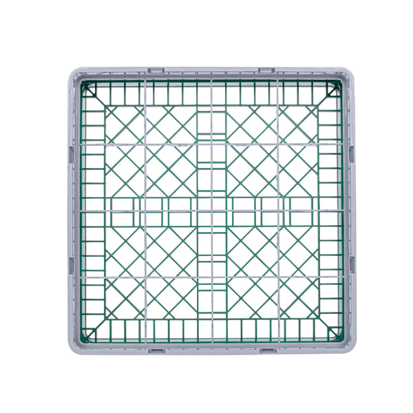 Optimize your glassware storage with our Clean Tek Professional Green Glass Rack. This commercial glass rack features 16 compartments, ensuring ample space for efficient dishwasher rack organization. Designed with durability in mind, this rack is constructed from strong PP materials for long-lasting use. The 1 full drop extender offers versatile storage options, making this barware organizer perfect for any busy establishment. Featuring an easy-to-handle design, this compartment rack simplifies the task of transporting and storing glassware. The open interior compartments of this rack maximize air circulation, reducing drying time and averting water spots on your glassware. The solid external walls of this rack provide additional protection, keeping your glassware secure during handling and washing. Measuring 19.69 inches in length by 19.69 inches in width by 5.63 inches in height, this dishwasher rack fits seamlessly into most commercial dishwashers. Sold in a 1 count box.