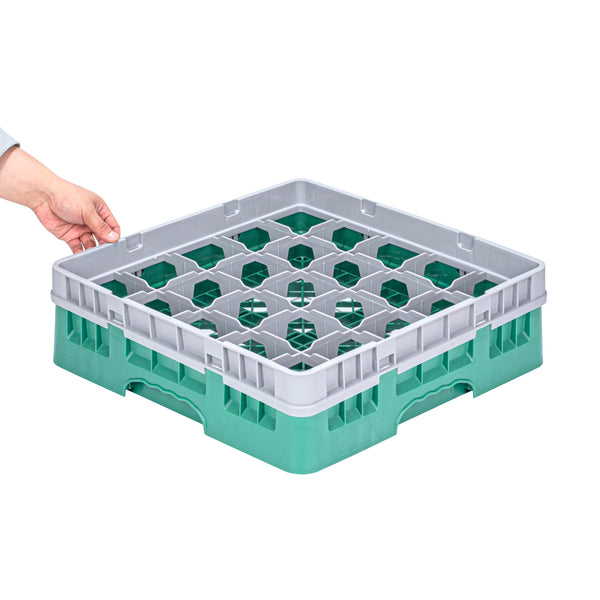 GREEN GLASS RACK - 25 COMPARTMENTS, 1 FULL DROP EXTENDER