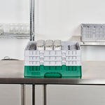 Our Clean Tek Professional Green Glass Rack are the ultimate solution for efficiently organizing glassware storage in any foodservice establishment. With 36 compartments, this dishwasher rack offers ample space to securely hold your glassware during washing cycles. Featuring 1 full drop extender, this compartment rack provides additional height for taller glasses while maintaining stability. Designed with 2 half drop extenders, this barware organizer is customized to fit various glass sizes, ensuring a snug fit. Constructed from durable PP, this commercial glass rack withstands the rigors of daily use in busy settings. The easy-to-handle design allows for effortless transport and stacking, making it ideal for fast-paced kitchens and bars. With open interior compartments, this rack facilitates thorough cleaning and drainage of your glassware. Solid external walls contribute to the sturdy structure, safeguarding your glassware from accidental breakage. Measuring 19.69 inches in length by 19.69 inches in width by 8.86 inches in height, this glassware storage solution accommodates a wide variety of glass sizes. Sold in a 1 count box.