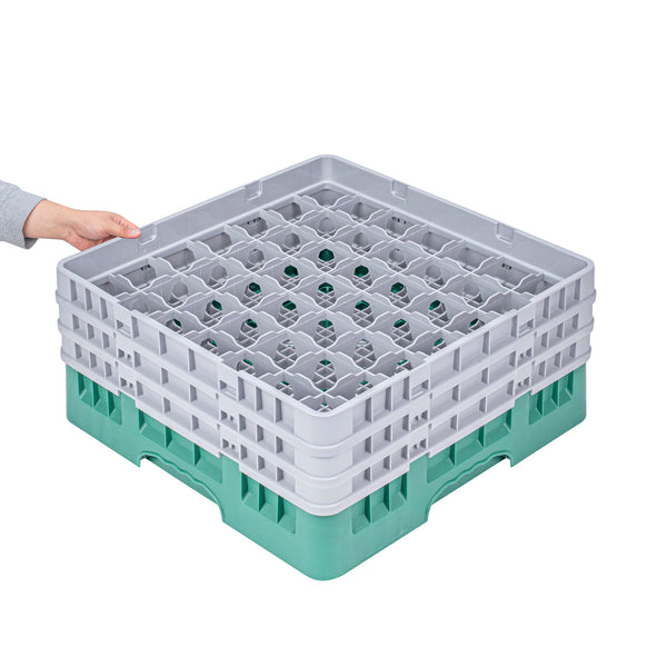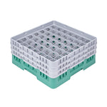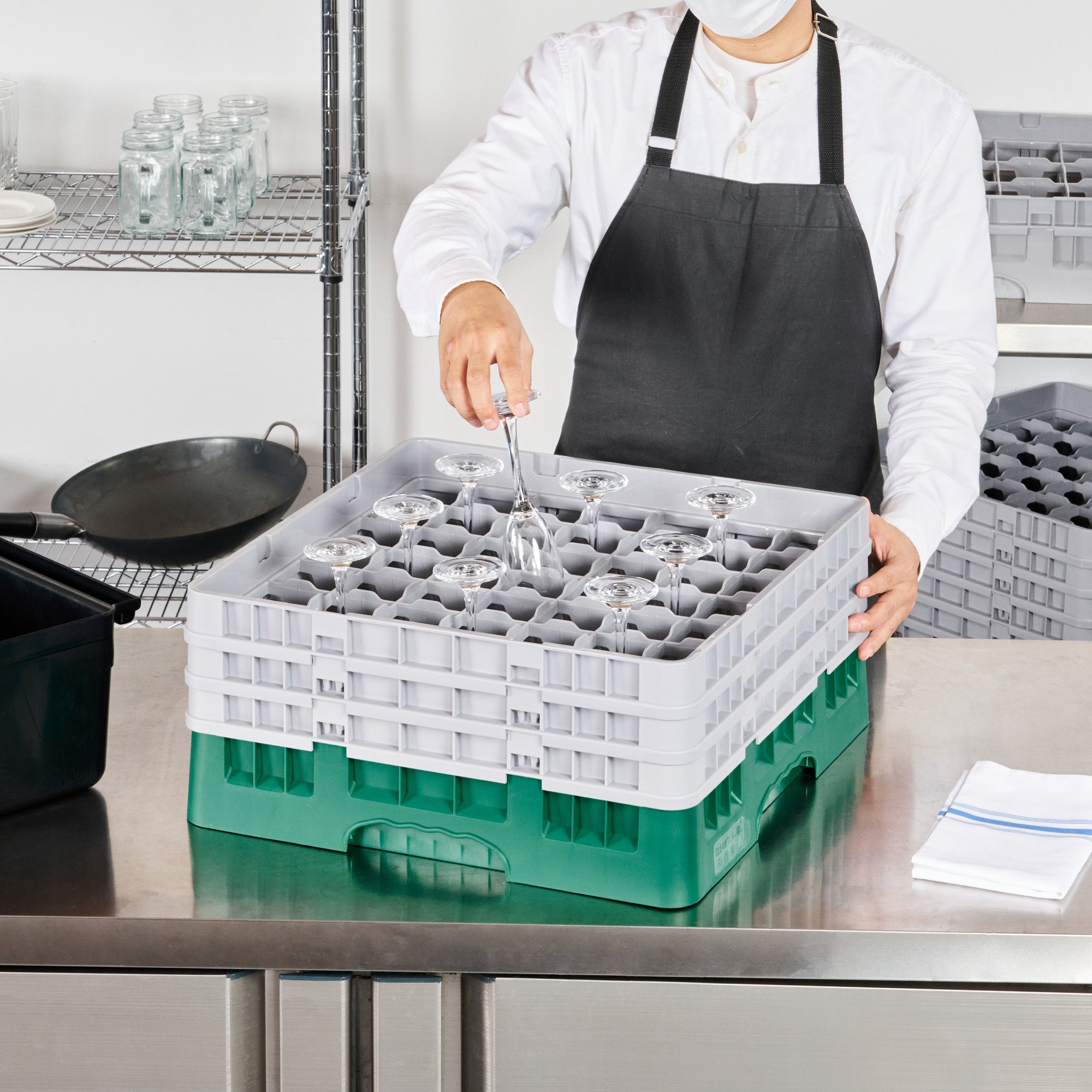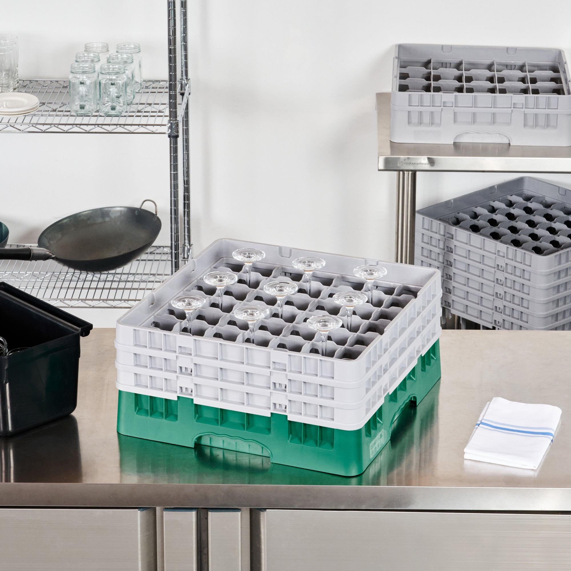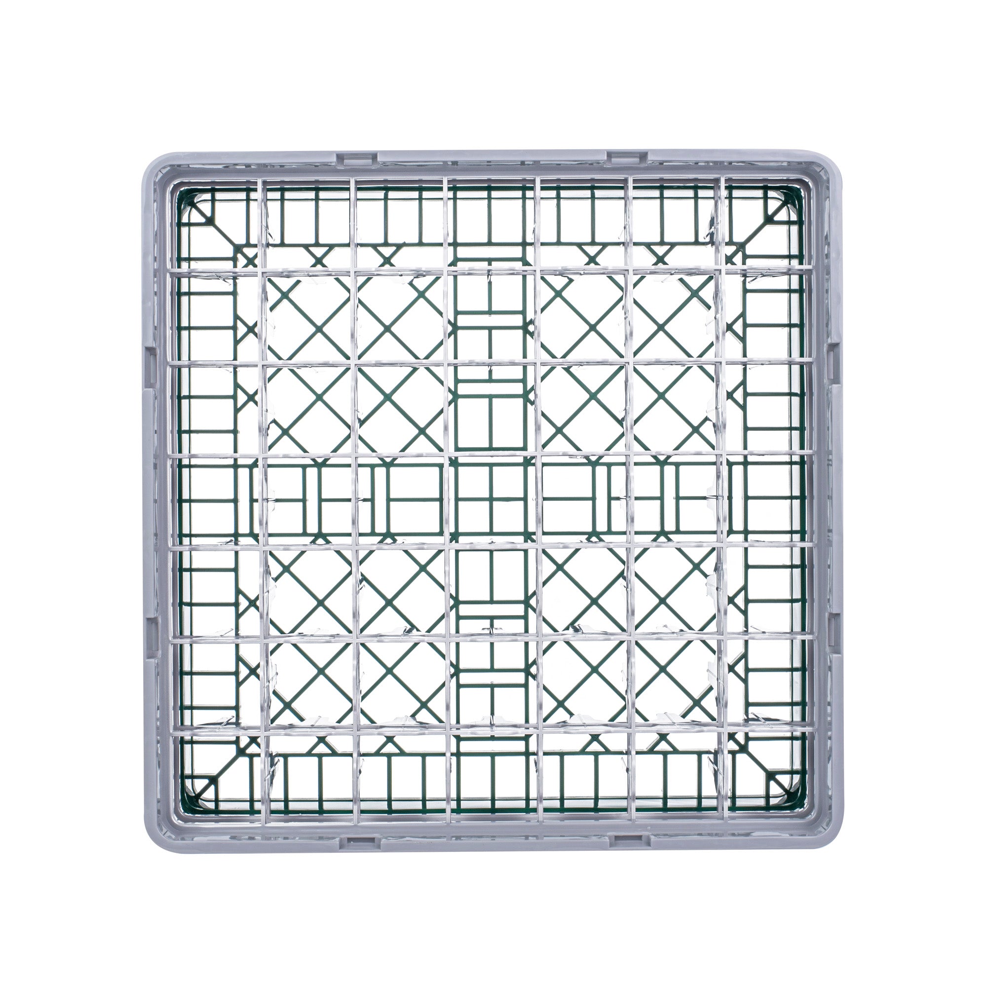 Optimize your barware storage with our Clean Tek Professional Green Glass Rack. Featuring 49 compartments, this commercial glass rack is perfect for organizing glassware in busy kitchens and bars. This dishwasher rack includes a full drop extender and two half drop extenders for versatile stacking options. Crafted with durable PP material, this compartment rack is built to withstand heavy use. The easy-to-handle design ensures efficient loading and unloading of glassware. With open interior compartments, this barware organizer allows for thorough cleaning and quick drying. Solid external walls provide added protection and stability during transport. Measuring 19.69 inches in length by 19.69 inches in width by 8.86 inches in height, this glassware storage solution fits seamlessly into any commercial dishwasher setup. Sold in a 1 count box.
