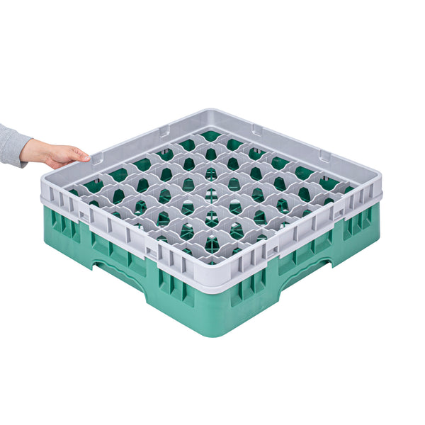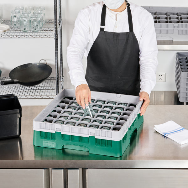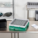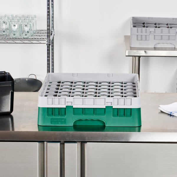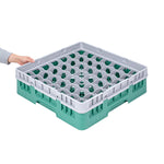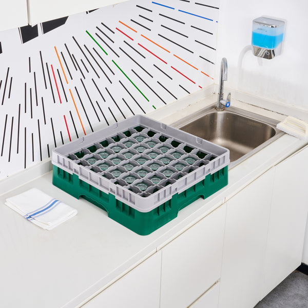 Optimize your glassware storage with our Clean Tek Professional Green Glass Rack, which is expertly designed to meet the needs of busy commercial kitchens. Featuring 49 compartments, this dishwasher rack ensures each glass is securely held in place, minimizing breakage during the cleaning process. A full drop extender adds versatility to this compartment rack, accommodating various glass heights with ease. The durable PP construction of these barware organizers provides outstanding longevity, making them a cost-effective choice for any establishment. Designed with an easy-to-handle structure, this commercial glass rack simplifies transport and storage tasks, boosting operational efficiency. Open interior compartments ensure thorough washing and drying, while the solid external walls offer superior protection and stability. Measuring 19.69 inches in length by 19.69 inches in width by 5.63 inches in height, this rack fits seamlessly into most commercial dishwasher setups. Sold in a 1 count box.