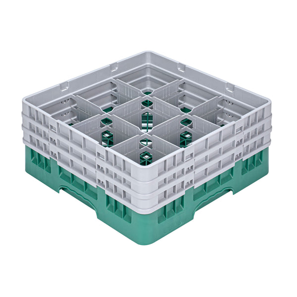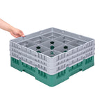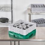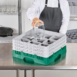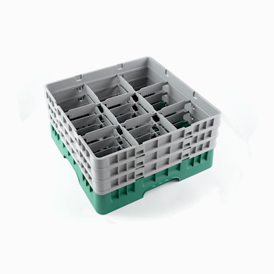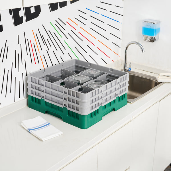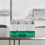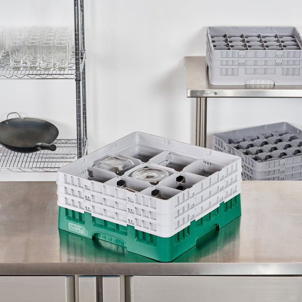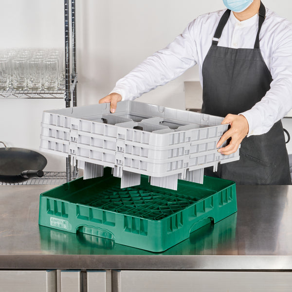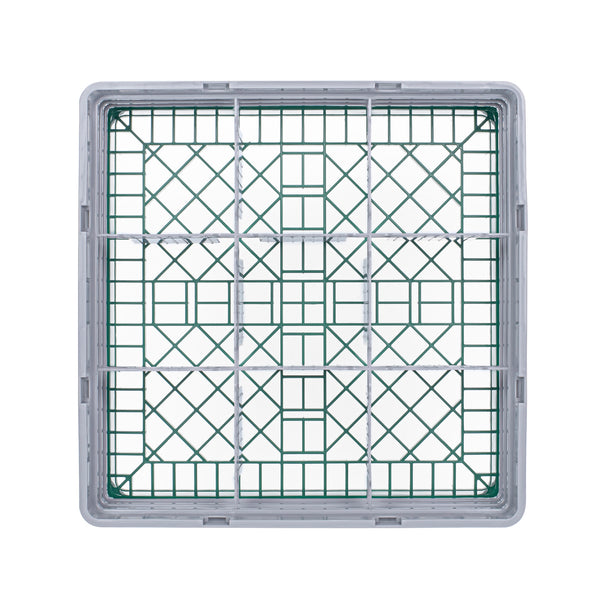 Enhance your glassware storage solutions with our Clean Tek Professional Green Glass Rack. This dishwasher rack features 9 compartments to securely hold and protect different types of glassware. With a full drop extender and two half drop extenders, this compartment rack offers customizable height options for various glass sizes. Crafted from durable PP, this barware organizer ensures long-lasting use in commercial settings. The easy-to-handle design of this rack simplifies loading and unloading, saving valuable time during busy shifts. The open interior compartments of this glass rack allow for efficient water circulation, ensuring thorough cleaning and drying of your glassware. Plus, the solid external walls of this rack provide additional stability and protection during transportation and storage. Measuring 19.69 inches in length by 19.69 inches in width by 8.86 inches in height, this commercial glass rack fits seamlessly into most commercial dishwashers. Sold in a 1 count box.