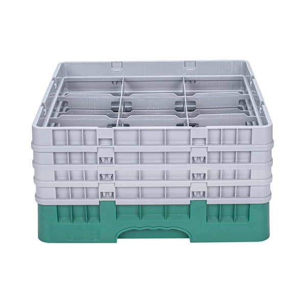 GREEN GLASS RACK - 9 COMPARTMENTS, 1 FULL AND 3 HALF DROP EXTENDERS