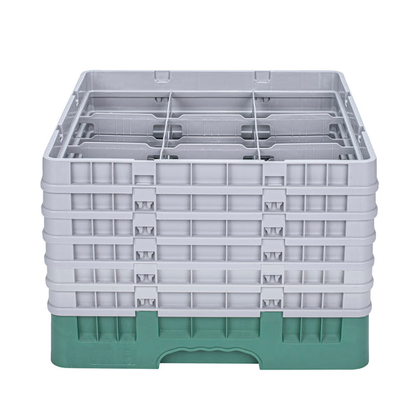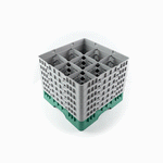 GREEN GLASS RACK - 9 COMPARTMENTS, 1 FULL AND 5 HALF DROP EXTENDERS