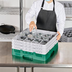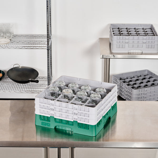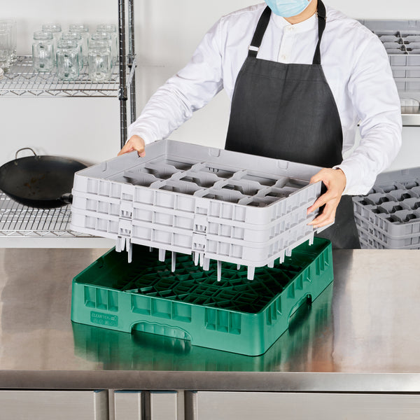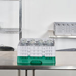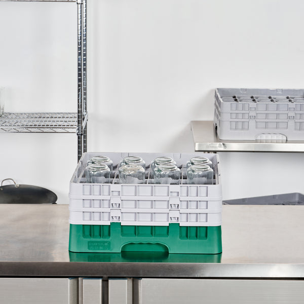Our Clean Tek Professional Green Glass Rack revolutionizes glassware storage for the foodservice industry. This dishwasher rack features open interior compartments for enhanced cleaning, ensuring each glass sparkles. With the ability to hold up to 9 glasses, this compartment rack maximizes efficiency for busy bars and restaurants. Designed with solid external walls, this commercial glass rack provides superior protection for your valuable glassware. A full drop extender is included with this glass rack, allowing for versatility and ease of use in any cleaning scenario. Made of durable polypropylene, this barware organizer is built to withstand the demands of a commercial kitchen. The easy-to-handle design ensures effortless transport and stacking, optimizing your glassware storage solutions. Measuring 19.69 inches in length by 19.69 inches in width by 5.63 inches in height, this rack fits seamlessly into standard kitchen spaces. Sold in a 1 count box.