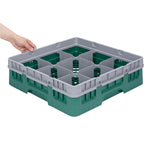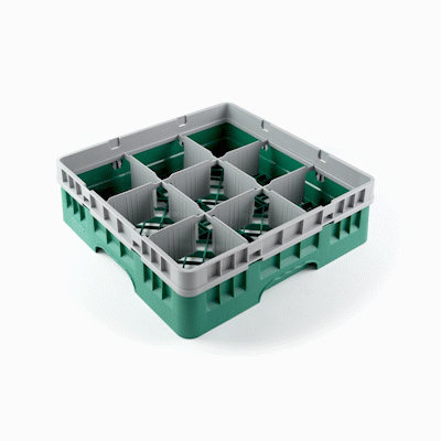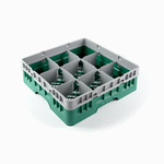 GREEN GLASS RACK - 9 COMPARTMENTS, 1 FULL DROP EXTENDER