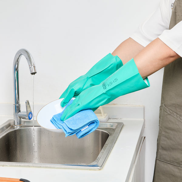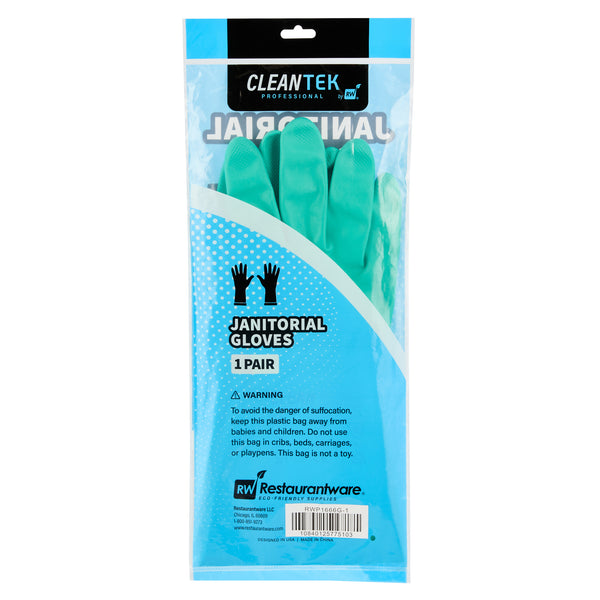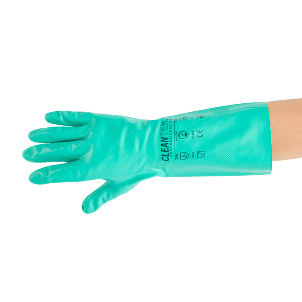 Safeguard your hands with superior protection against chemicals. Clean Tek Professional Green Rubber Chemical Resistant Gloves offer chemical resistance to ensure safety when working with cleaning chemicals, making them essential for maintaining hygiene in foodservice environments. These latex-free gloves eliminate the risk of allergic reactions, providing peace of mind for users with latex sensitivities. With a flocked grip, these gloves enhance handling in wet conditions, improving efficiency during food prep or cleaning tasks. The longer cuff design, measuring 12.99 inches, effectively shields wrists from splashes and spills, providing additional protection in fast-paced kitchens. Made from durable rubber, these gloves deliver high durability, ensuring they withstand the rigors of daily use. Equip your staff with these heavy-duty nitrile gloves to enhance workplace safety and performance. Each order includes 1 Pair of Clean Tek Professional Heavy-Duty Nitrile Gloves.