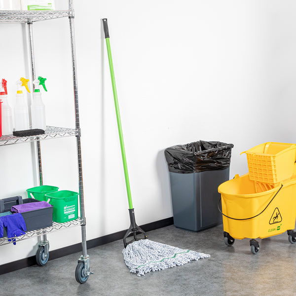 Elevate your cleaning routine with our Clean Tek Professional Green Metal Quick Release Mop Handle. Equipped with a convenient lever system, this wet mop handle ensures that removing soiled mops is quick and effortless. Pair this mop handle with our collection of Clean Tek Professional mop heads for a complete and efficient cleaning solution. Featuring a locking wheel, this heavy-duty mop handle securely holds narrow band mop heads in place. The ergonomic PP grip on this long mop handle reduces strain and fatigue during extended cleaning sessions. Crafted from premium iron, this green mop handle is built to withstand daily use, offering long-lasting performance. Measuring 60 inches in length, this metal mop handle is designed for optimal reach and efficiency. Sold in a 1 count box. Mop heads are available and sold separately.