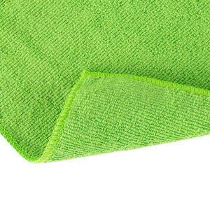 Provide customers with a sanitary dining experience by effectively wiping down surfaces with our Clean Tek Professional Green Microfiber Cleaning Cloths. Constructed from a blend of polyester microfibers, these non-abrasive cloths are perfect for cleaning kitchen equipment, windows, or tabletops without leaving lint or streaks behind. These microfiber cloths are great for polishing glassware at a bar or wiping down countertops at a restaurant. Featuring a green finish, these cleaning cloths can be easily implemented into a color-coded cleaning system to prevent cross-contamination at your foodservice establishment. These soft cleaning cloths provide you with an effortless way to clean delicate surfaces without causing damages. Conveniently machine-washable, these green cleaning cloths offer you a simple way to wash cloths after use. These microfiber cleaning rags can hold up to 4 times more moisture than traditional cotton cloths to effectively soak up messes. Each microfiber cloth measures 16 inches long by 16 inches wide. Each microfiber cloth measures 16 inches long by 16 inches wide. Shipped in a 10 count box.