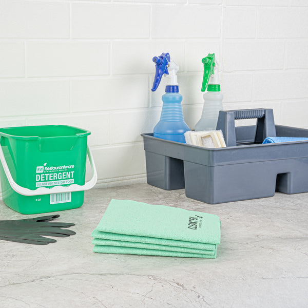 Experience the ultimate cleaning efficiency with our Clean Tek Professional Green Microfiber Cleaning / Drying Cloths. Fabricated from PVA microfiber, these cleaning rags harden when dry to prevent the breeding of bacteria, assuring a healthier, safer working environment. These cleaning cloths are high-absorbent to effectively surfaces to be cleaned and dried, making them ideal for busy foodservice establishments. Each multipurpose microfiber towel is suitable for various cleaning tasks, such as dusting, polishing, and wiping surfaces. To efficiently soak up liquids, these cleaning towels are highly absorbent and ideal for tackling spills and providing thorough cleaning across surfaces. These microfiber cloths are lint-free and ensure a pristine cleaning experience by leaving surfaces free from unwanted fibers. With a zero-pilling design, these car wash towels maintain a smooth and durable texture for effective and long-lasting use. These wiping rags are versatile and compatible with a variety of cleaning agents to handle any spills or mess. For a safe and gentle cleaning process, these drying cloths are scratch-free to preserve surfaces and prevent any potential scratches or damage to delicate items. Each green microfiber cloth is machine washable, making it simple to reuse for maintaining cleanliness. The green finish of these car wash towels provides easy visual identification to avoid any mix-ups, preventing cross-contamination during use. Measuring 13 inches in length by 15 inches in width, these microfiber rags provide ample surface area for cleaning tasks big and small. Sold in a 100 count box.
