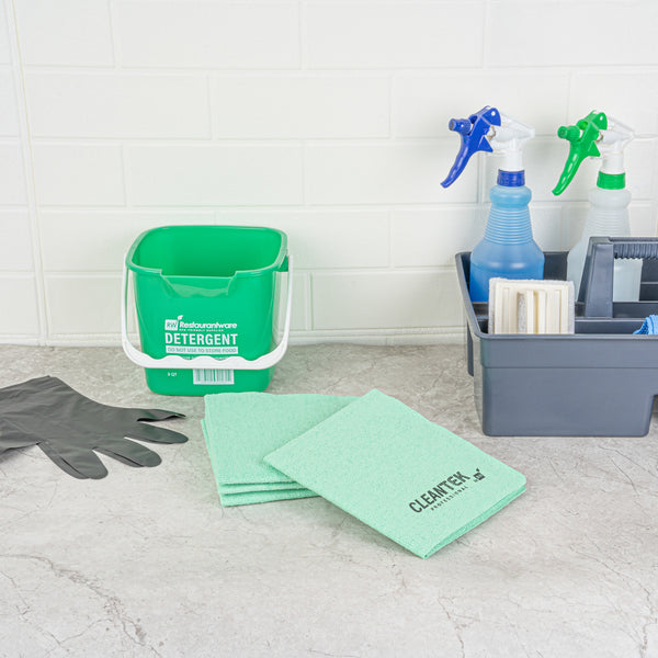Experience the ultimate cleaning efficiency with our Clean Tek Professional Green Microfiber Cleaning / Drying Cloths. Fabricated from PVA microfiber, these cleaning rags harden when dry to prevent the breeding of bacteria, assuring a healthier, safer working environment. These cleaning cloths are high-absorbent to effectively surfaces to be cleaned and dried, making them ideal for busy foodservice establishments. Each multipurpose microfiber towel is suitable for various cleaning tasks, such as dusting, polishing, and wiping surfaces. To efficiently soak up liquids, these cleaning towels are highly absorbent and ideal for tackling spills and providing thorough cleaning across surfaces. These microfiber cloths are lint-free and ensure a pristine cleaning experience by leaving surfaces free from unwanted fibers. With a zero-pilling design, these car wash towels maintain a smooth and durable texture for effective and long-lasting use. These wiping rags are versatile and compatible with a variety of cleaning agents to handle any spills or mess. For a safe and gentle cleaning process, these drying cloths are scratch-free to preserve surfaces and prevent any potential scratches or damage to delicate items. These microfiber rags come with a resealable plastic bag, allowing easy organization and cleanliness when not in use. Each green microfiber cloth is machine washable, making it simple to reuse for maintaining cleanliness. The green finish of these car wash towels provides easy visual identification to avoid any mix-ups, preventing cross-contamination during use. Measuring 13 inches in length by 15 inches in width, these microfiber rags provide ample surface area for cleaning tasks big and small. Sold in a 5 count box.