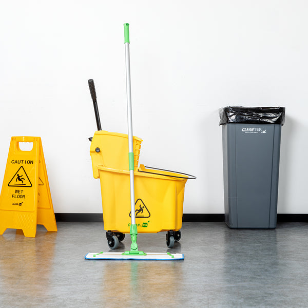 Enhance cleaning efficiency with the versatile microfiber mop. The Clean Tek Professional Microfiber Mop features an advanced microfiber mop head that effectively captures dirt and debris, ensuring thorough cleaning for any surface. With its ergonomic 60-inch aluminum handle, this wet mop system significantly reduces user fatigue, making extended cleaning sessions less strenuous. The slim mop frame is designed to clean hard-to-access areas efficiently, providing restaurant owners with an ideal kitchen floor mop solution. This mop's durable construction withstands frequent use in high-traffic areas, offering long-lasting performance. Its machine-washable mop pad allows for easy cleaning and reuse, promoting cost-effectiveness in maintenance routines. Invest in a dependable cleaning tool to maintain pristine conditions in your establishment. Each order includes 1 Clean Tek Professional Microfiber Mop.