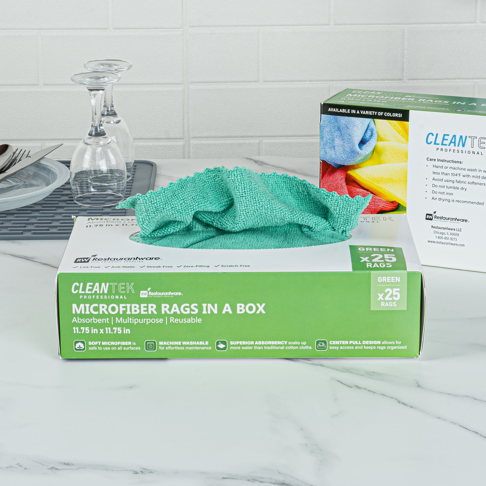 GREEN MICROFIBER RAGS IN A BOX