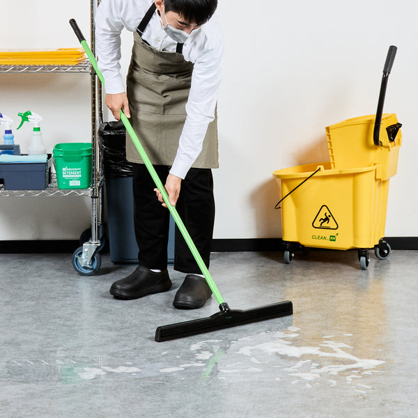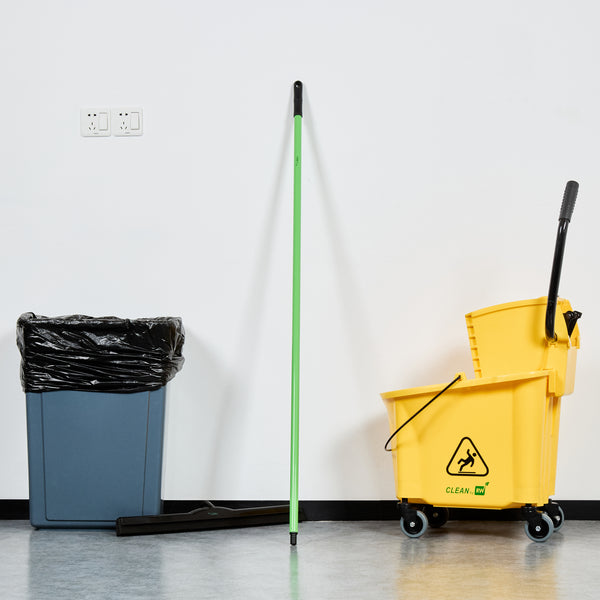 Achieve pristine windows and clean floors with our Clean Tek Professional Green Steel Handle. Pair this metal handle with our collection of compatible Clean Tek Professional window strip washers and floor squeegees for robust cleaning performance. This squeegee handle has a threaded tip that ensures a secure fit with your cleaning tool and reduces wobbling while cleaning. The ergonomic design of this green handle creates a comfortable grip and minimizes hand fatigue over prolonged use. Made from premium steel, this handle for squeegee boasts durability and ensures long-lasting use at your business establishment. Measuring 55.12 inches in length, this steel handle offers extended reach to hard-to-reach places. Sold in a 1 count box. Strip washers and floor squeegees are available and sold separately.