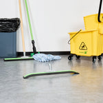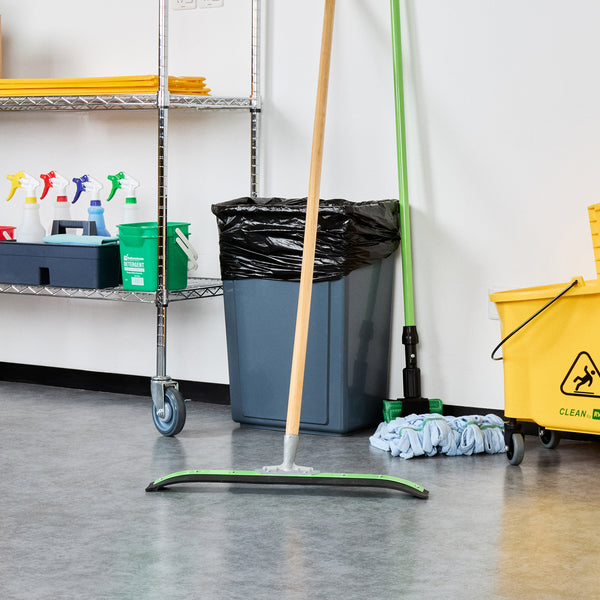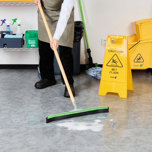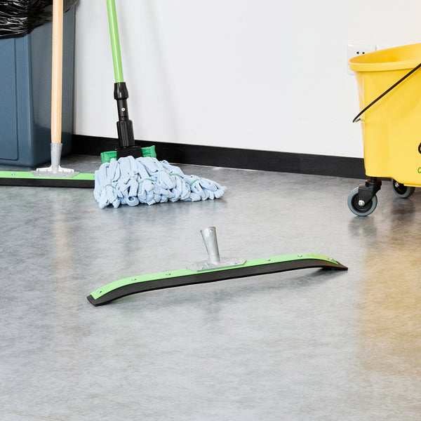 Experience unmatched efficiency in cleaning with our Clean Tek Professional Green Steel Heavy-Duty Floor Squeegee. Pair this large floor squeegee with our collection of compatible Clean Tek Professional handles for an all-in-one cleaning solution that offers both comfort and effectiveness. The meticulously curved design of this floor squeegee ensures it conforms to surfaces perfectly, making water and debris removal along edges and corners a breeze. Featuring a black rubber blade, this shower squeegee excels at eliminating water and debris from a wide range of surfaces. With a durable steel frame, this bathroom squeegee provides robust support and resists bending or warping, even with heavy use. Measuring 24.02 inches in length by 5.91 inches in width by 2.76 inches in height, this commercial floor squeegee offers extensive coverage for all your cleaning needs. Sold in a 1 count box. Handle is available and sold separately.