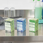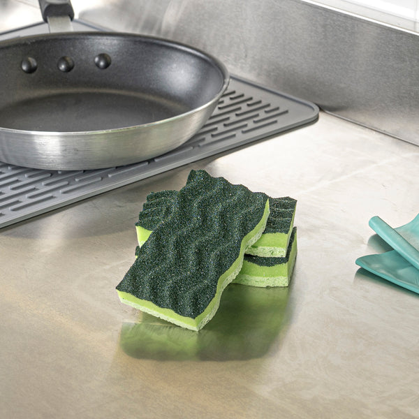 HEAVY-DUTY LIGHT AND DARK GREEN CELLULOSE SCOURING SPONGE - GROOVED