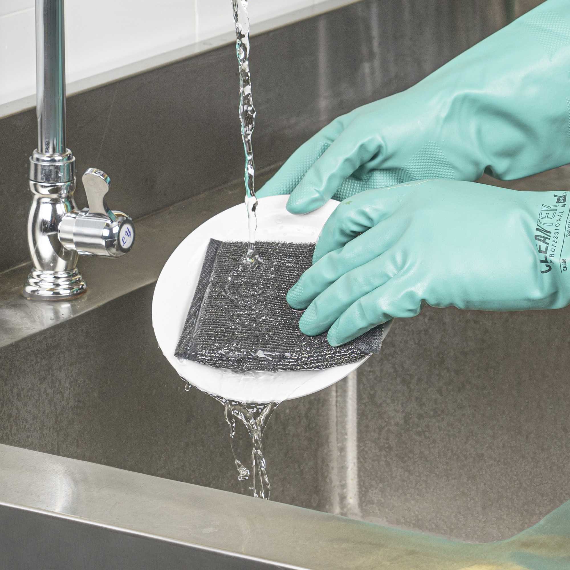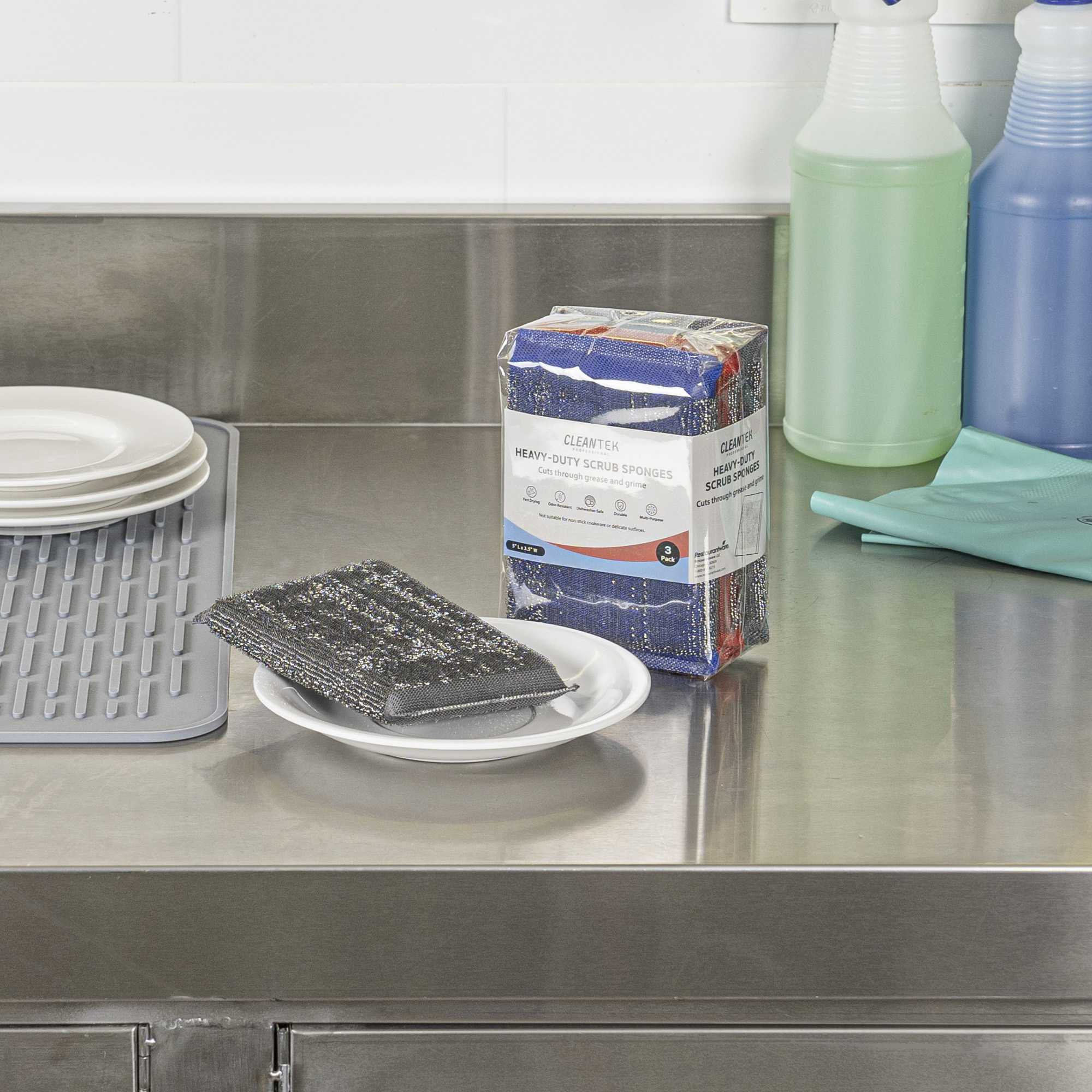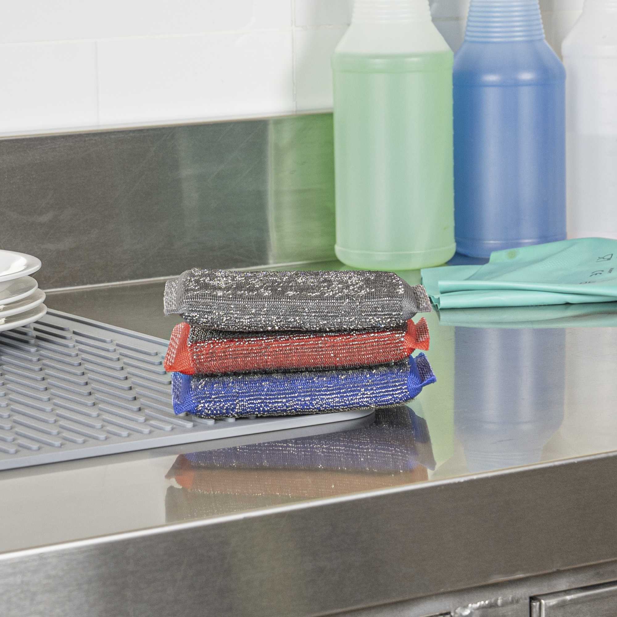 Enhance cleaning efficiency with quick-drying scouring pads. The Clean Tek Professional Multi-Use Plastic Scouring Pads are designed to minimize downtime between uses, thanks to their quick-drying feature, which ensures your kitchen cleaning tasks move swiftly. Constructed from durable plastic, these pads feature a double-sided design with iron wire, allowing you to scrub non-coated cookware without scratching, making them an ideal kitchen cleaning sponge. The odor-free nature of these pads guarantees a fresh and pleasant kitchen environment, enhancing the overall hygiene of your foodservice operation. Each scouring pad measures 5.12 inches in length and 3.54 inches in width, providing substantial coverage for efficient cleaning. Their multi-purpose functionality makes them an excellent choice for tackling various cleaning tasks, from pots and pans to countertops, without the worry of lingering odors. Improve your kitchen's cleanliness and efficiency by choosing these versatile scouring pads today. Each order includes 3 Clean Tek Professional Multi-Use Plastic Scouring Pads.