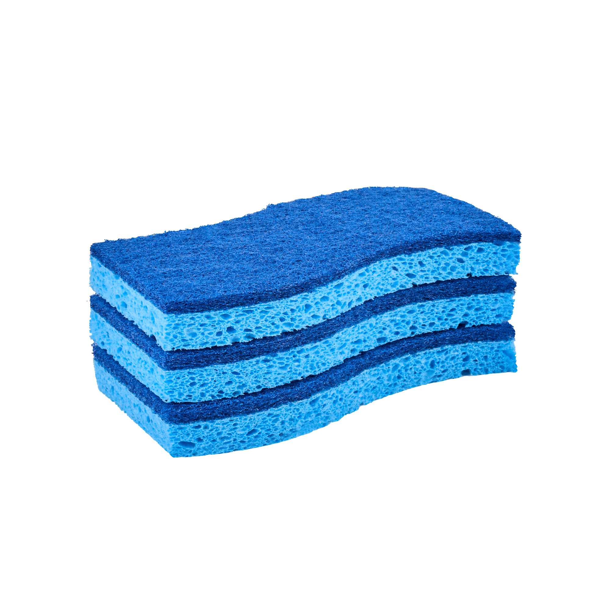 Tackle everyday cleaning with ease using our Clean Tek Professional Light Blue Cellulose Sponge / Dark Blue Medium-Duty Scouring Pad Combos. Featuring a dual-sided design, these versatile sponges combine an absorbent light blue cellulose side for quick liquid pickup with a dark blue medium-duty pad that scrubs away everyday grease and grime without damaging surfaces. Ideal for use on countertops, cookware, and appliances, its ergonomic wavy shape ensures a comfortable grip during extended cleaning tasks. Measuring 5.98 inches in length by 3.5 inches in width, these sponges offer a generous surface area for efficient cleaning, perfect for high-volume kitchens and foodservice operations. Sold in a 3 count box.