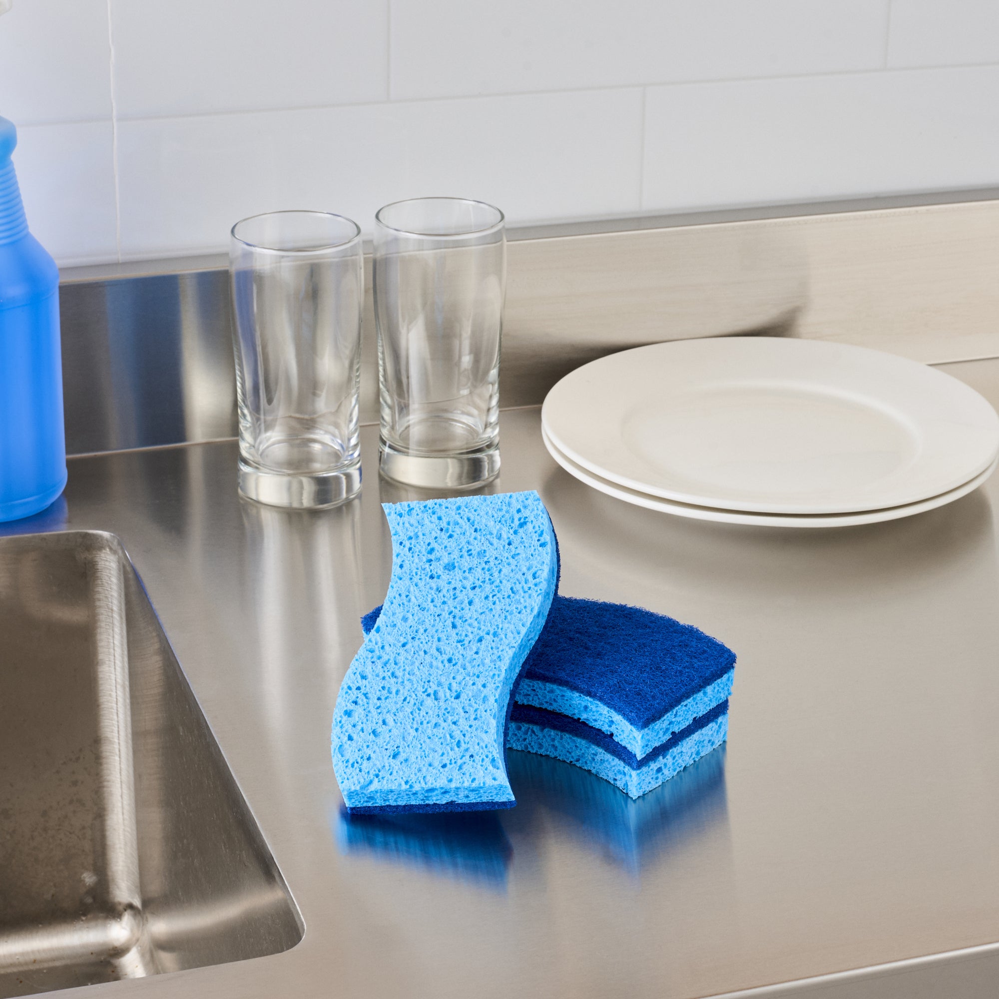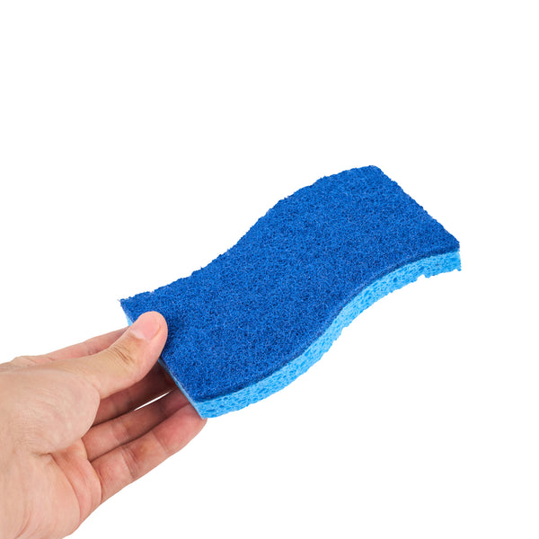 Tackle everyday cleaning with ease using our Clean Tek Professional Light Blue Cellulose Sponge / Dark Blue Medium-Duty Scouring Pad Combos. Featuring a dual-sided design, these versatile sponges combine an absorbent light blue cellulose side for quick liquid pickup with a dark blue medium-duty pad that scrubs away everyday grease and grime without damaging surfaces. Ideal for use on countertops, cookware, and appliances, its ergonomic wavy shape ensures a comfortable grip during extended cleaning tasks. Measuring 5.98 inches in length by 3.5 inches in width, these sponges offer a generous surface area for efficient cleaning, perfect for high-volume kitchens and foodservice operations. Sold in a 60 count box.
