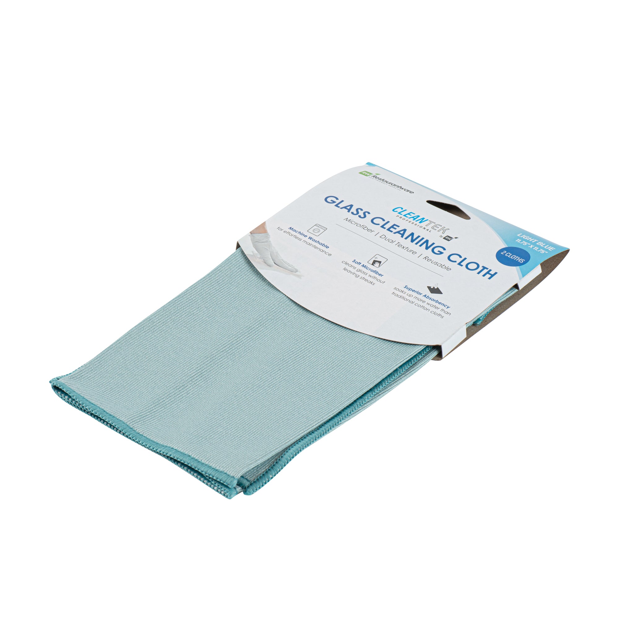 Upgrade your cleaning routine with our Clean Tek Professional light blue Microfiber Glass Cleaning Cloths. Designed with a dual texture, these microfiber cloths efficiently remove smudges and fingerprints, leaving your glassware impeccably clean. Crafted from soft microfiber, these lint-free light blue cloths are gentle on all surfaces, avoiding potential scratches. The superior absorbency of these cloths is capable of quickly soaking up any liquid spills in your restaurant or kitchen. Reusable and machine washable, these microfiber cloths provide a sustainable solution to your cleaning needs, reducing waste and promoting sustainability. Measuring 11.75 inches in length by 11.75 inches in width, these kitchen cleaning cloths are perfectly sized to handle any cleaning task in your food service establishment. Sold in a 100 count box.