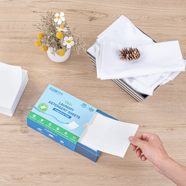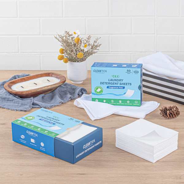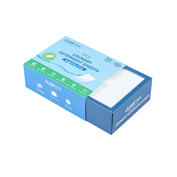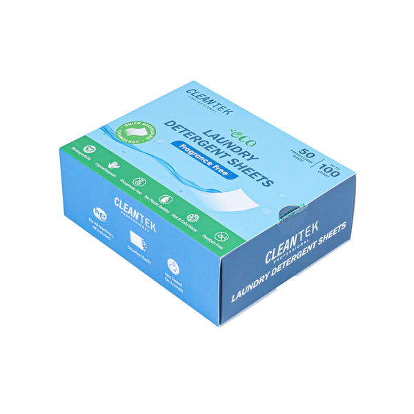 Elevate your laundry routine with our Clean Tek Professional Liquidless Laundry Detergent Sheets. These detergent laundry sheets are fragrance-free, perfect for sensitive skin and hypoallergenic needs. Biodegradable laundry sheets are designed to be eco-friendly, ensuring you contribute positively to the environment. Your clothes will love these detergent sheets as they soften fabric, reduce wrinkles, and eliminate stubborn stains, dirt, and odors. Ideal for everyday laundry, these laundry soap sheets are effective on cottons, linens, blends, and durable synthetics, while being safe for whites and all colors. Best laundry sheets for versatile use, they perform well in hot, cold, hard, or soft water. Easy to use, these detergent sheets provide the perfect amount with a simple one sheet for two loads application. Gentle on skin, these hypoallergenic laundry sheets offer a safe and effective clean for your clothes. These laundry sheets dissolve completely in both hot and cold water, delivering powerful cleaning results every time. Measuring 5.71 inches in length by 4.33 inches in width these compact detergent sheets are convenient to store. Each box contains 50 detergent sheets.
