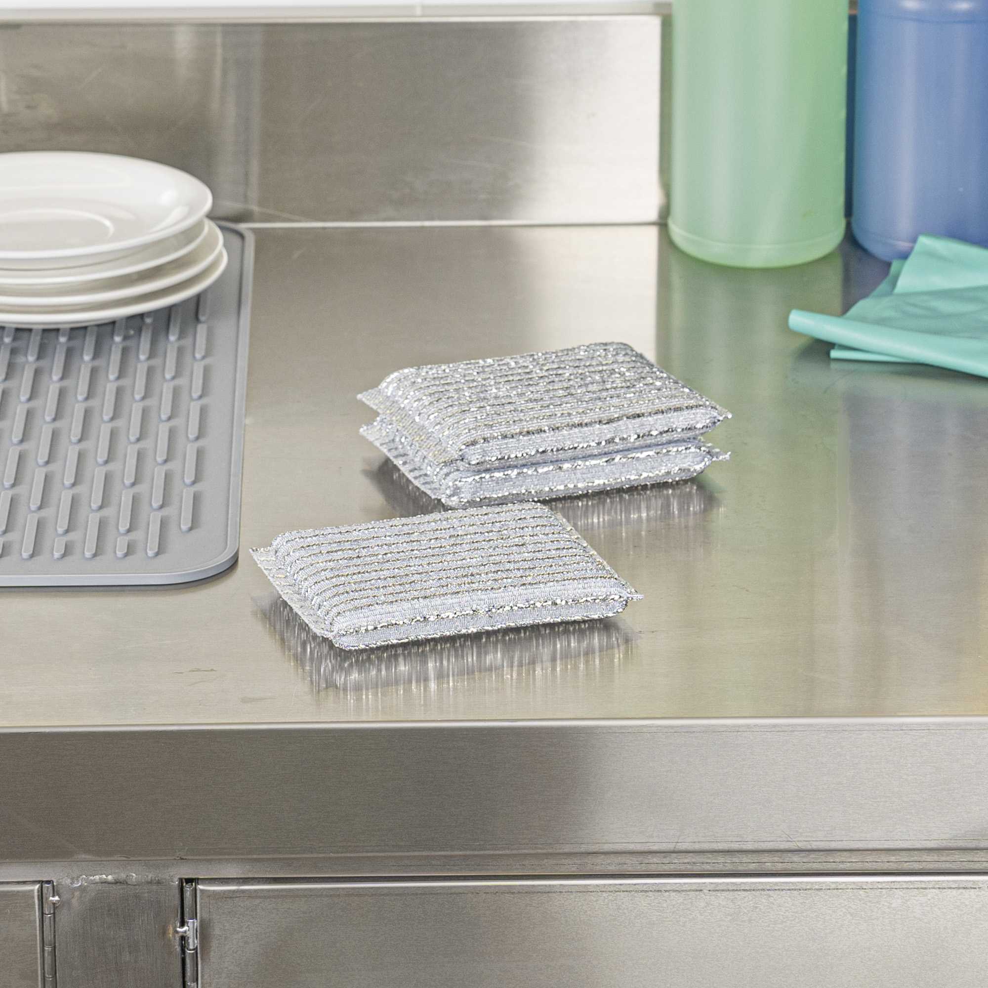 MULTI-PURPOSE SILVER SCRUB SPONGE - STRIPED TEXTURE, NON-SCRATCH