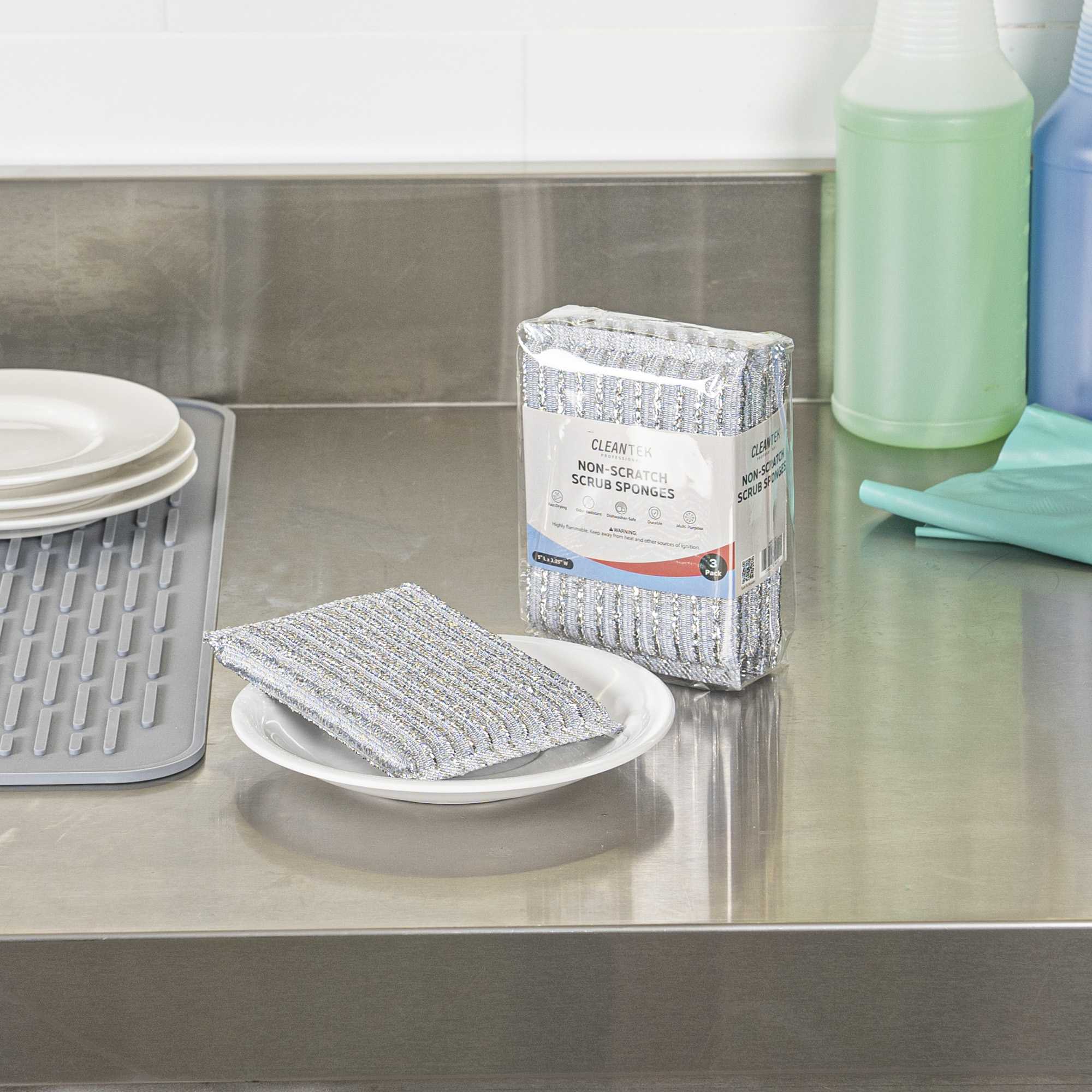 Maintain spotless surfaces effortlessly with our Clean Tek Professional Non-Scratch Kitchen Sponge. This kitchen sponge boasts a scratch-free design that preserves countertops and cookware, ensuring your kitchen remains in pristine condition. Made from durable plastic, its wear-resistant construction guarantees long-lasting performance, providing exceptional value for foodservice establishments. With dimensions of 4.9 inches by 3.3 inches by 0.6 inches, these sponges fit comfortably in your hand, offering precise control as you clean. Their good cleaning power effectively removes food residue, enhancing kitchen efficiency and sanitation. Designed not to fall off slag, these sponges prevent messy cleanups, making them an indispensable tool for chefs and kitchen staff. Enhance your cleaning routine with this reliable dish scrubber and experience the difference in your daily operations. Each order includes 3 Clean Tek Professional Non-Scratch Kitchen Sponges.