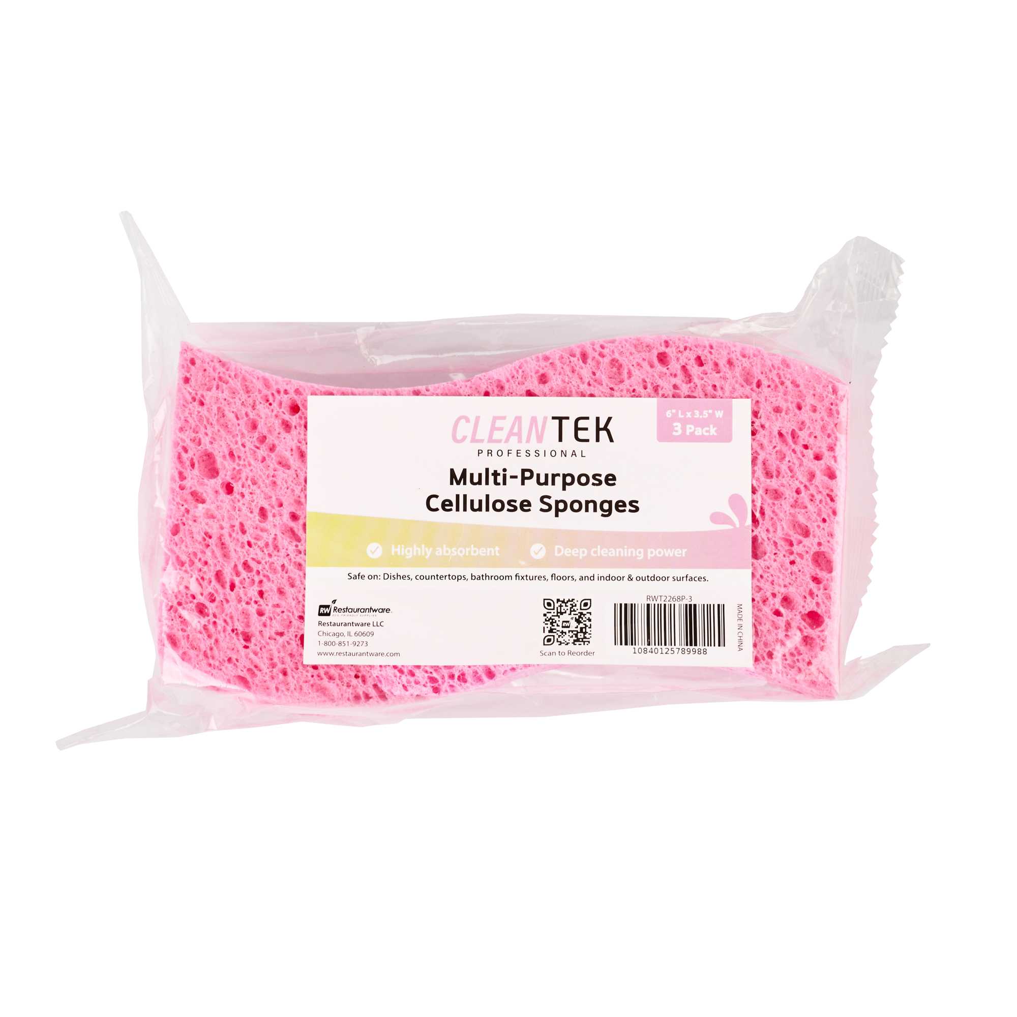 Tackle daily cleaning tasks with ease using our Clean Tek Professional Pink Cellulose Sponges. These cleaning sponges are expertly designed with a wavy shape, offering a superior grip that makes scrubbing a breeze. Made from absorbent cellulose, these cleaning sponges are perfect for tackling everyday spills and maintaining pristine countertops and dishes. They are easy to rinse and reusable, making them a durable choice for everyday use. The clean, professional-looking pink color enhances sanitation visibility and maintains a polished appearance. These sponges measure 5.98 inches long by 3.5 inches wide. Sold in a 3 count box.